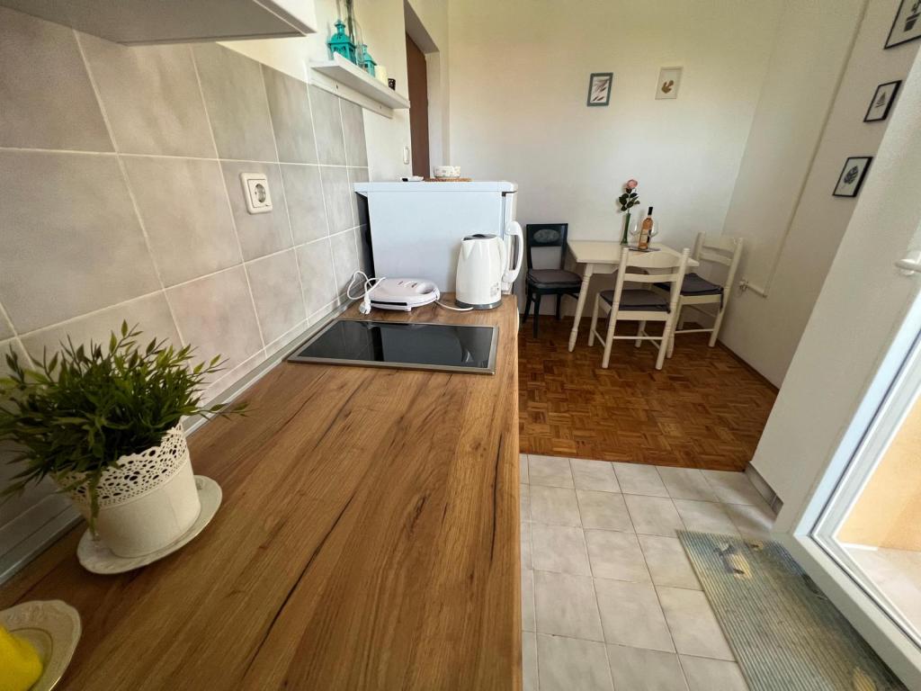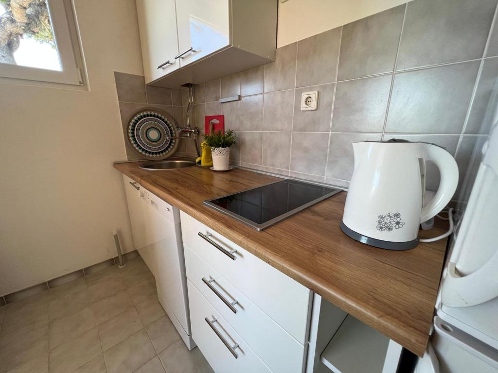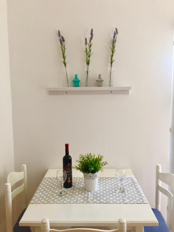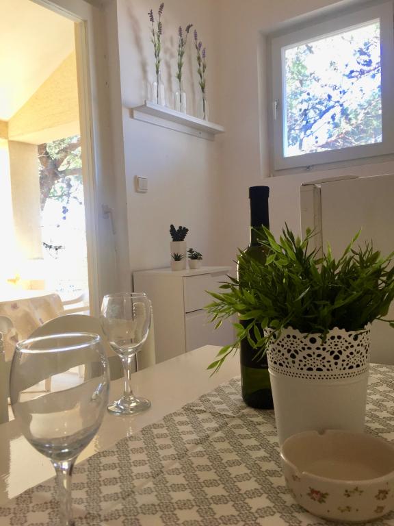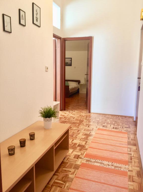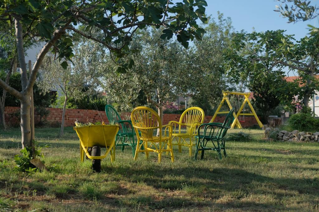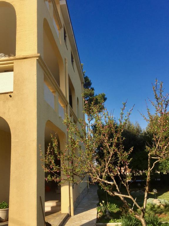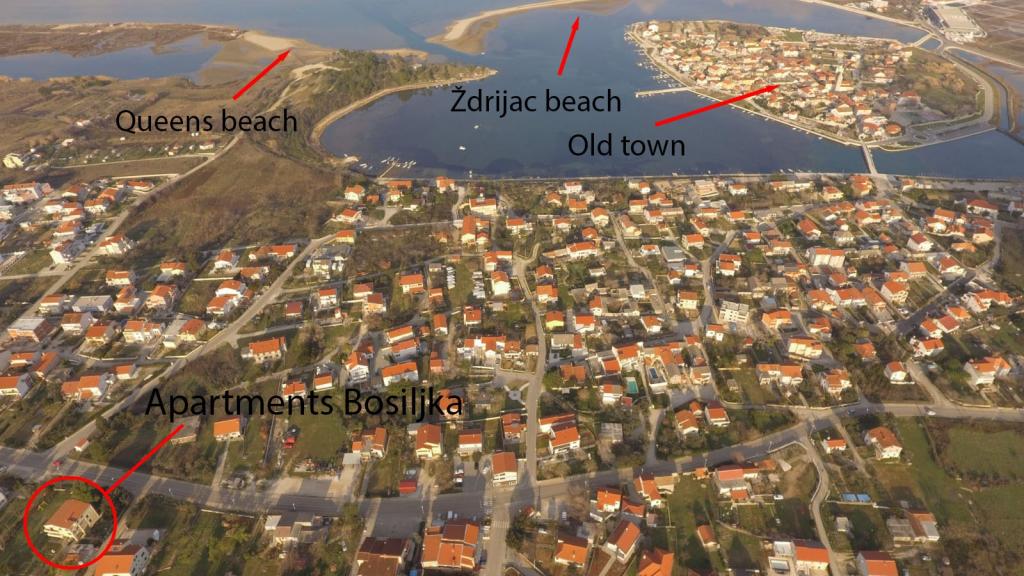 W pełni wyposażone apartamenty w spokojnej części Nin. Znajdują się 200m od morza. Obiekt położony jest 10 minut spacerem od plaży i 10 minut spacerem od centrum miasta. Supermarket Tommy i sklep spożywczy znajdują się zaledwie 50 metrów dalej. Pierwsza restauracja znajduje się zaledwie 100 metrów dalej. Bezpłatny parking dostępny jest na dziedzińcu budynku. Na terenie obiektu znajduje się duży ogród z piaskownicą i huśtawkami dla dzieci. W apartamentach znajdują się nowo umeblowane kuchnie. W każdym apartamencie znajduje się lodówka z zamrażarką. Na podwórku znajduje się również grill.