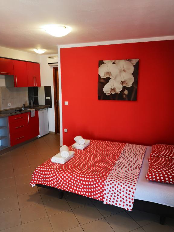 Rodzina z dziećmi (1 rok, 3 lata) Dobra lokalizacja, do świetnej plaży blisko, do centrum Nin również niedaleko. Wystarczająco na spacer z dziećmi (mieliśmy wózki). Wygodnie, czysto, wszystko co niezbędne na wyposażeniu (garnki, naczynia, sztućce). Łóżko wygodne, klimatyzacja w pokoju. Mili i pomocni właściciele. Polecam.