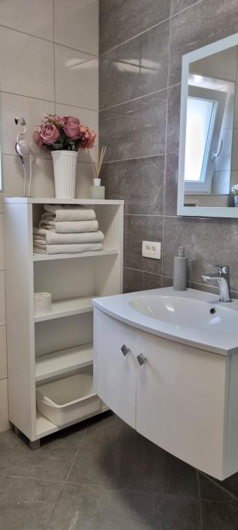 Odpocznij od codziennego zabiegania i przyjedź do apartamentów Adrian, które znajdują się w idealnej lokalizacji, jeśli masz małe dzieci. Apartamenty znajdują się zaledwie 200 m od centrum starego miasta Nin, 70 m od morza, 400 m od naturalnej piaszczystej plaży i złóż leczniczego błota, w spokojnej okolicy, z dala od głównych dróg, otoczone dużym ogrodem. Jeśli chcesz połączyć spokojne wakacje z aktywnym, możesz odwiedzić nowoczesny ośrodek turystyczny Zaton Holiday Resort, który znajduje się zaledwie 10 minut spacerem od hotelu. W pobliżu znajduje się wiele dobrych restauracji, sklepów, bank, poczta, targ, dworzec autobusowy, przychodnia i apteka. Ciesząc się wspaniałą atmosferą naszych apartamentów, poznaj stare chorwackie miasto królewskie Nin, europejski cel doskonałości, miasto z trzytysięczną historią i wyjątkową przyrodą! Nasz zakątek raju - Nin - europejski cel doskonałości w 2010 roku.