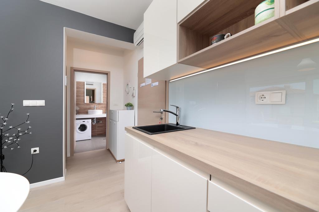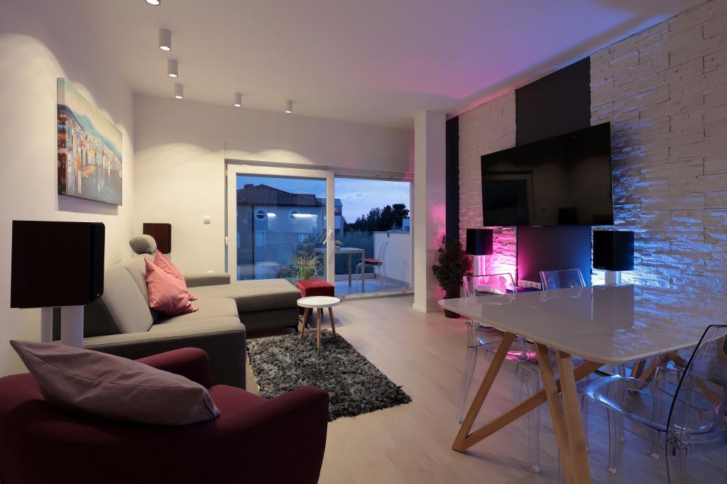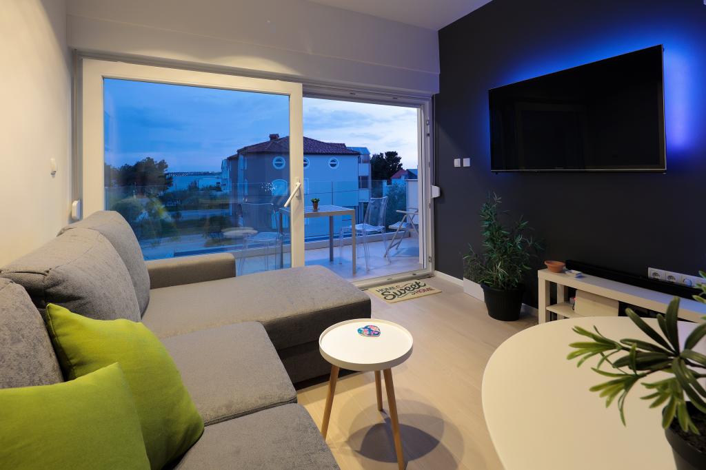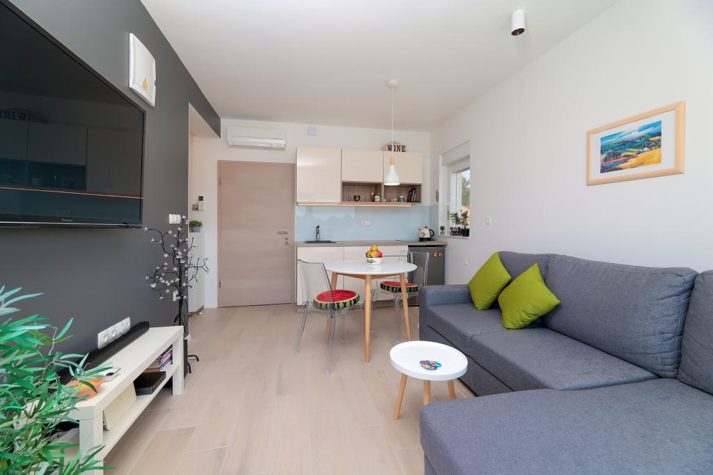 Apartamenty są luksusowo wyposażone w inwerterowe klimatyzatory Mitsubishi w każdym pokoju, duży przekątny telewizor z wszystkimi europejskimi programami satelitarnymi, Netflix, nowoczesną kuchnię z płytą indukcyjną, łazienkę z prysznicem, dużą nowoczesną markizę balkonową podnoszącą się i opadającą oraz duży apartament "Alan 3 " posiada biurko z monitorem 4K o dużej przekątnej. Można również wypożyczyć rowery elektryczne o zasięgu ponad 60 km na jednym ładowaniu akumulatora.