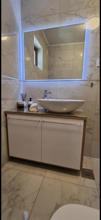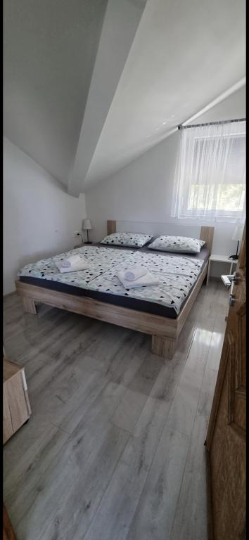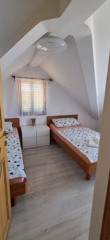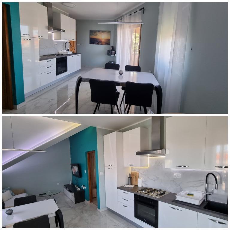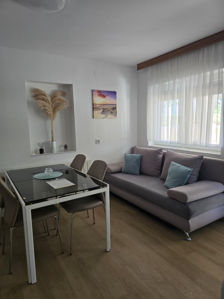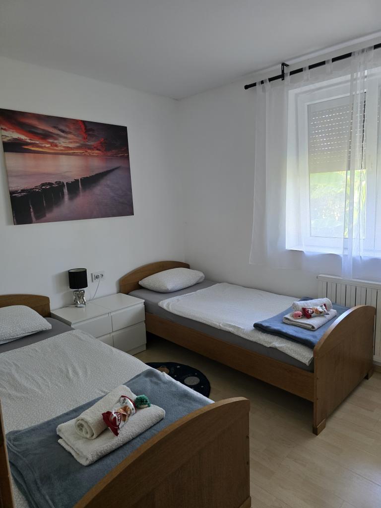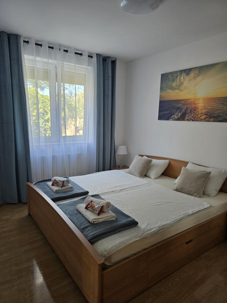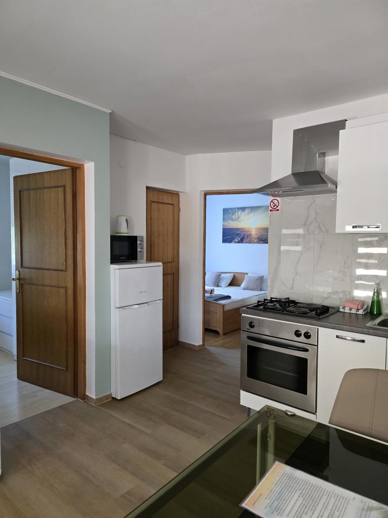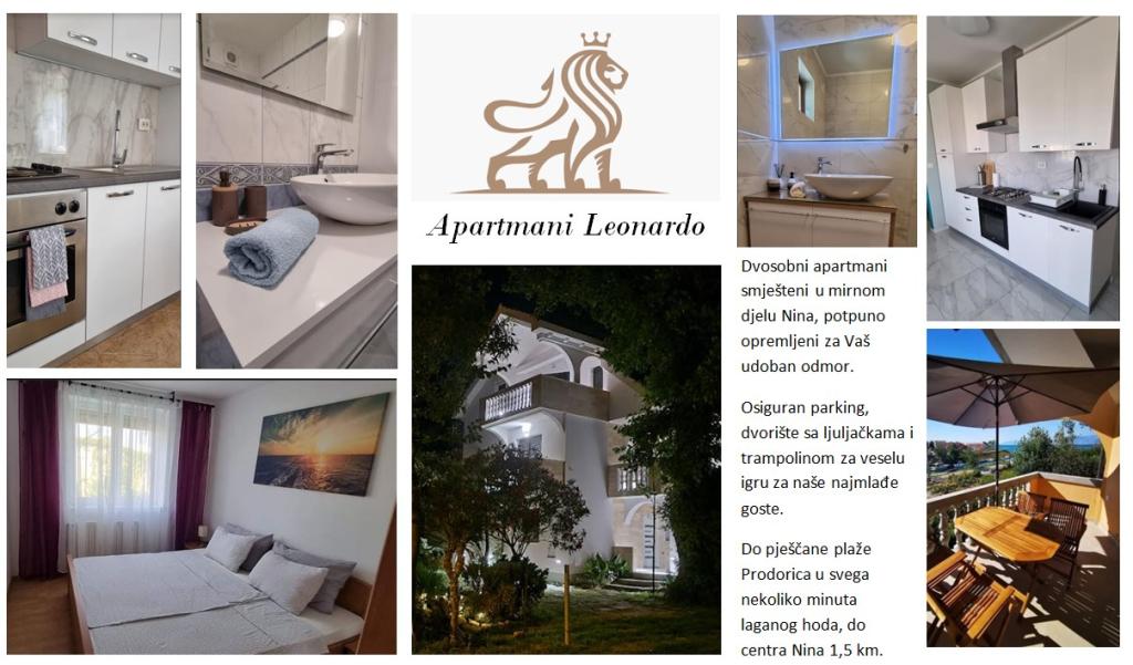 Apartamenty Leonardo znajdują się w rodzinnym domu z łącznie 3 apartamentami. Dom położony jest w spokojnej części miasta, niedaleko piaszczystej plaży Prodorica, co jest doskonałym wyborem dla rodzin z dziećmi. Do centrum Nin można dojść w 15 minut lub dojechać samochodem w 5 minut. Apartamenty składają się z dwóch sypialni z łóżkiem podwójnym i dwoma łóżkami pojedynczymi, łazienki z wanną/prysznicem, w pełni wyposażonej kuchni i jadalni oraz zadaszonego tarasu na świeżym powietrzu. Do dyspozycji gości: klimatyzacja, telewizor, kuchenka mikrofalowa, czajnik, pralka, suszarka do włosów, żelazko, łóżeczko i podajnik dla dziecka. Do każdego mieszkania przynależy parking na podwórzu budynku.
