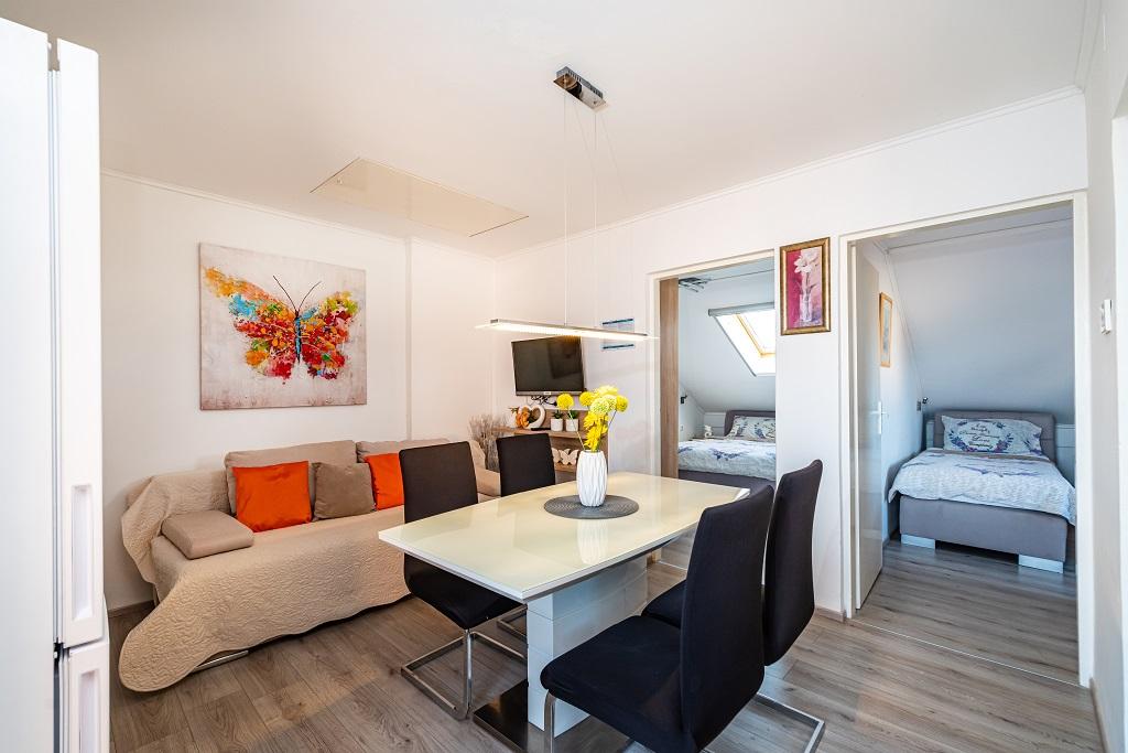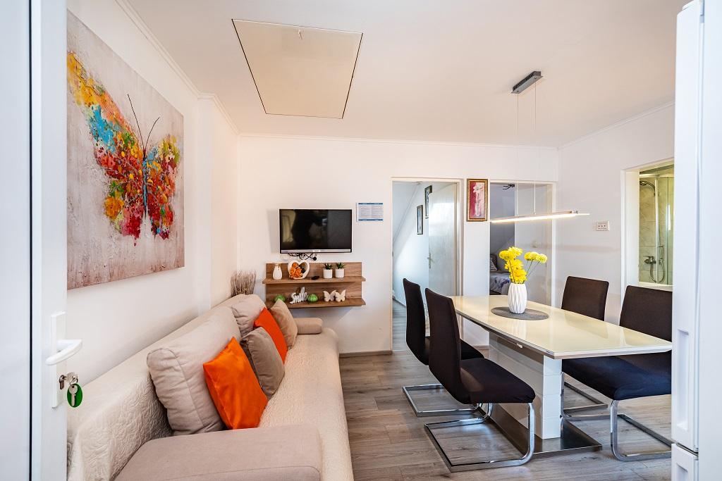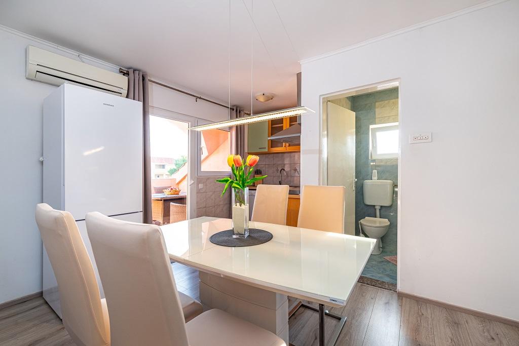 Nasze nowoczesne apartamenty znajdują się w Ninie, nadmorskim miasteczku w południowej części Zatoki Ninskiej na półwyspie Ždrijac, 17 km na północ od Zadaru. Jest to najstarsze miasto królewskie w Chorwacji, położone w pobliżu słynnej piaszczystej plaży Ždrijac. Nin to nie tylko zabytkowe miasto. Wraz z okolicą oferuje również sprzyjające warunki do wypoczynku i rekreacji. Wokół Ninu znajduje się kilka długich, piaszczystych lagun z piaszczystymi plażami, z dala od tłumów, oraz strefa przemysłowa o doskonałym mikroklimacie. Apartamenty położone są w pięknej i bardzo spokojnej okolicy, niecałe pięć minut spacerem od plaży i Morza Adriatyckiego. Dom ma dwa piętra. Właściciele mieszkają na parterze, a dwa apartamenty na pierwszym i dwa na drugim piętrze. Dom jest wolnostojący, a posesja ogrodzona, dzięki czemu jest bardzo odpowiednia dla dzieci. Posiada również parking dla pięciu samochodów i grill w ogrodzie. Apartamenty nie są przystosowane dla osób poruszających się na wózkach inwalidzkich. Dostępny jest bezprzewodowy internet. Plaża i morze znajdują się zaledwie 100 metrów od apartamentów, a inne udogodnienia oddalone są o 600 metrów.