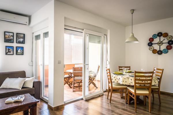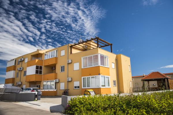 Nowo wybudowany, wyposażony apartament 15 minut spacerem od centrum Nin. Obiekt położony jest w bardzo spokojnej okolicy, około 60 metrów od piaszczystej plaży. W apartamencie znajduje się również zadaszony grill z drewnianymi ławkami i stołem, a także prysznic solarny na świeżym powietrzu. Miejsce parkingowe znajduje się na ogrodzonym podwórzu. Mieszkanie składa się z sypialni, salonu z możliwością dostawki dla dwóch osób, łazienki, balkonu oraz jadalni i jest wyposażone w internet oraz telewizję cyfrową EVO.