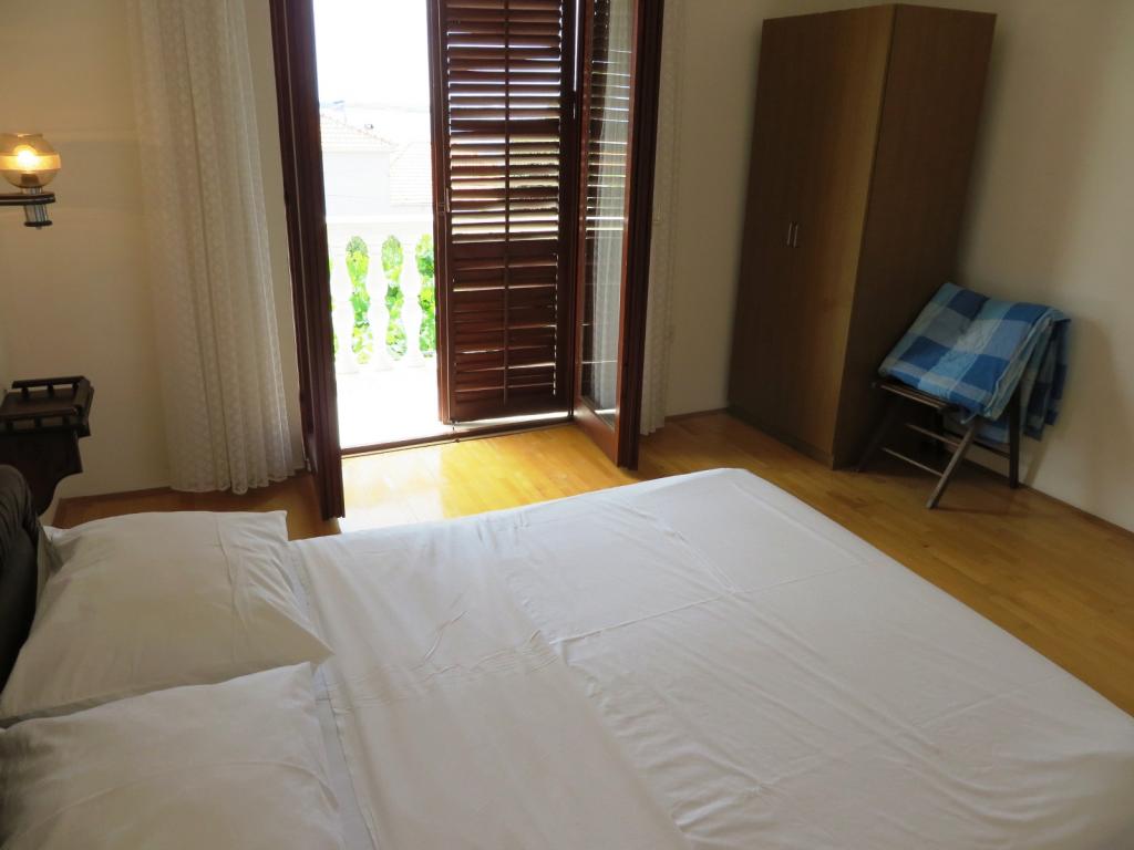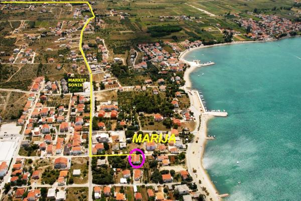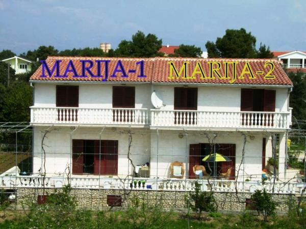 MARIJA-1 i Mary-2- komfortowy bliźniak z 2 oddzielnych apartamentów dla dwóch lub więcej rodzin lub grup (od 16-18 osób), wszystkie pokoje (4 4) są na pierwszym piętrze, na parterze znajduje się duży salon na każdym boczna (24m2 i 28 m2) ze stołem dla 10 osób, kuchnia ze wszystkimi niezbędnymi urządzeniami do gotowania i podawania posiłków dla 10 osób, rozkładaną sofą (dla 2 osób), telewizję satelitarną, radio CD, DVD, duży taras (32m2 31m2 ) z wikliny meble ogrodowe, grill, w sumie 5 kupaonaa, 3 i 2 z wanną z prysznicem. W każdym apartamencie znajduje się pralka. Pościel, ręczniki, ściereczki, gaz, prąd, woda, drink powitalny drink i podróży, parking, Wi-Fi, kopiowanie, faksowanie, zwierzęta, opłata klimatyczna i końcowe sprzątanie. Dom położony jest 80 metrów od morza i 70 metrów między dwoma ulicami, tak, że małe dzieci mogą bezpiecznie bawić się na podwórku. 8 pokoi 5 z nich posiada balkon, 4 z niezakłóconym widokiem na morze i jeden na morze i ogród.