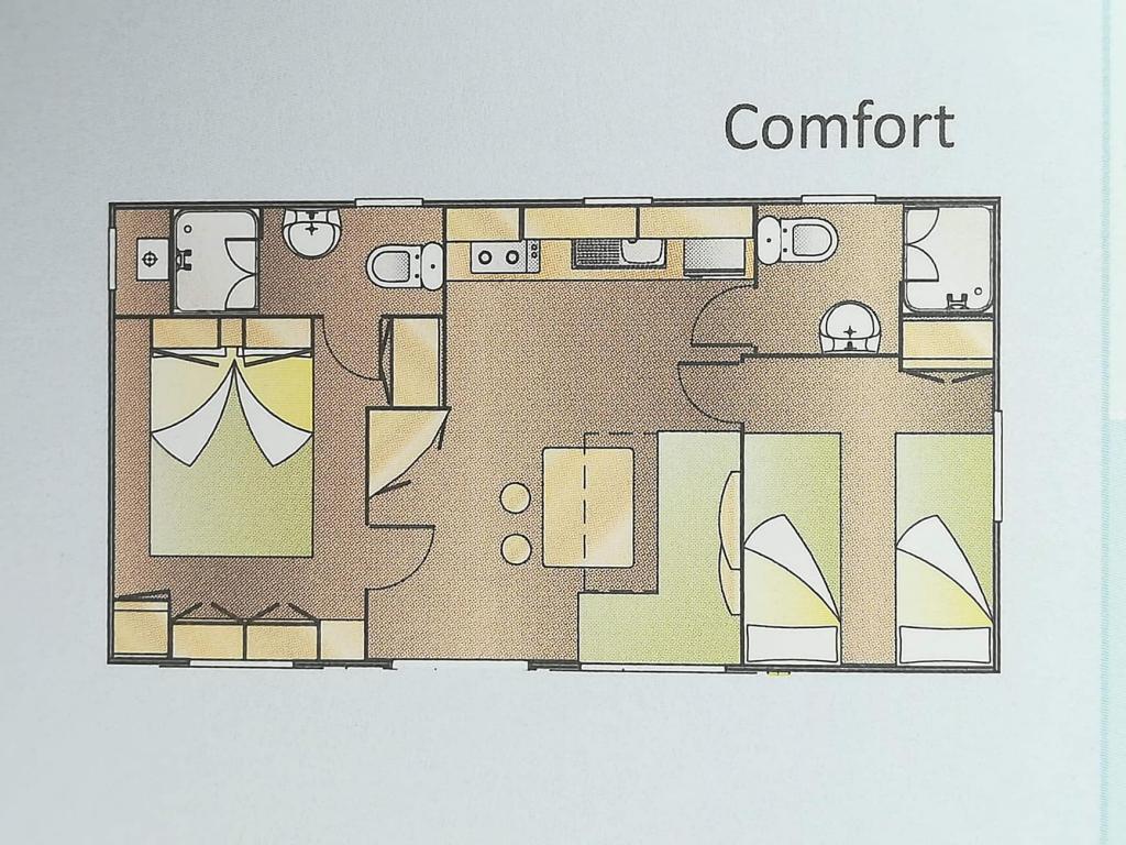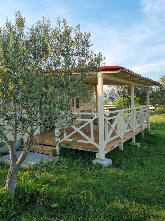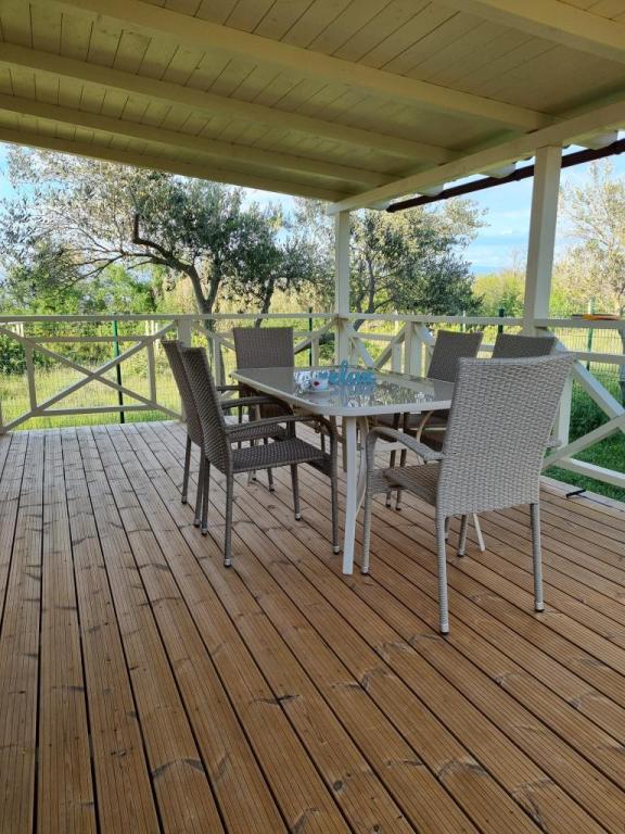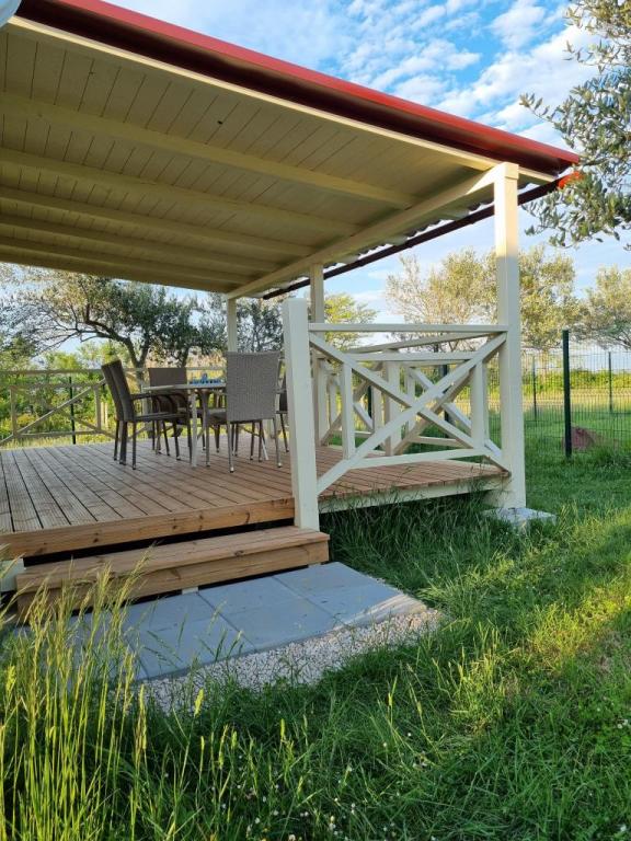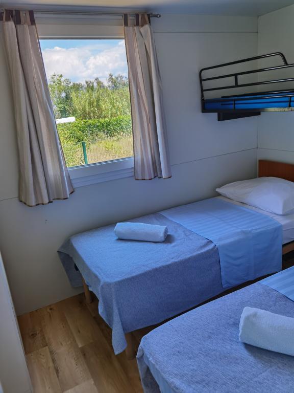 Przy wejściu na kemping Nin znajdują się nowocześnie urządzone domki mobilne. Z tarasu roztacza się widok na morze i starówkę Ninu. Obiekt położony jest 5 minut spacerem od plaży Kraljičina i 10 minut spacerem od centrum miasta oraz wszystkich niezbędnych udogodnień. Domki położone są w cichej i relaksującej okolicy, pośród drzew oliwnych.
