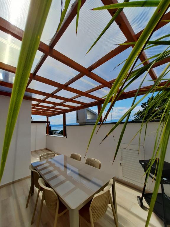 Mieszkanie jest całkowicie odnowione z dwoma sypialniami, salonem, jadalnią, łazienką, przedpokojem i tarasem z widokiem na morze. Na tarasie oferujemy leżaki, duży stół dla 6 osób oraz grill. Mieszkanie znajduje się w Kijac, około 1 km od centrum Njivice. Wyposażony jest w dwa klimatyzatory. Do morza jest tylko 200 m.