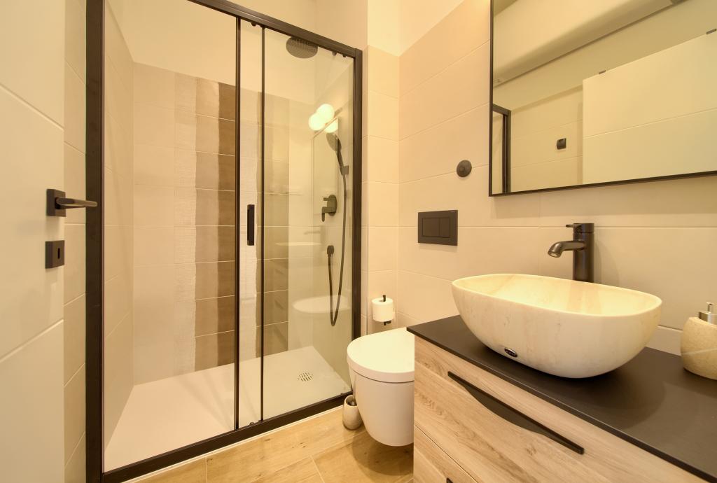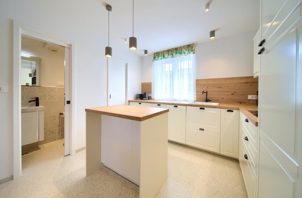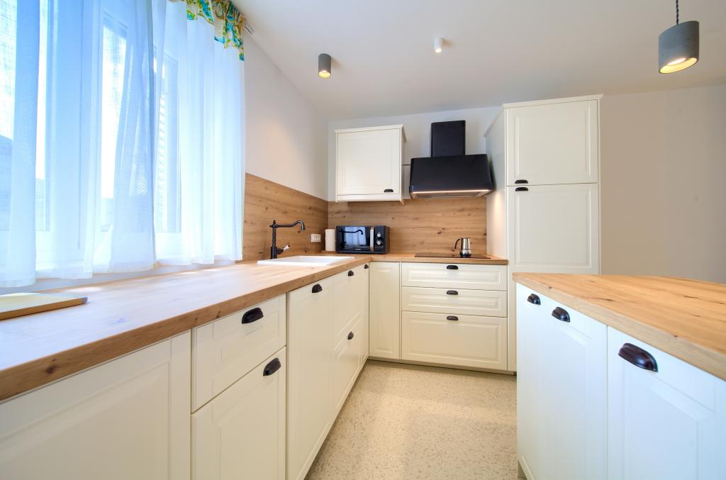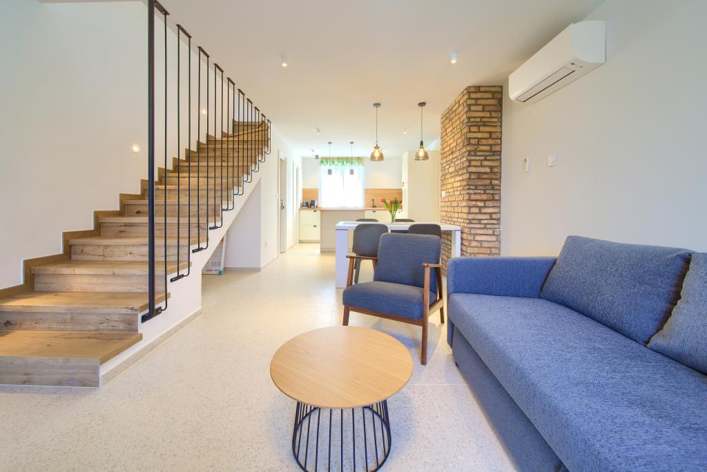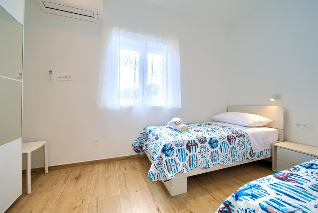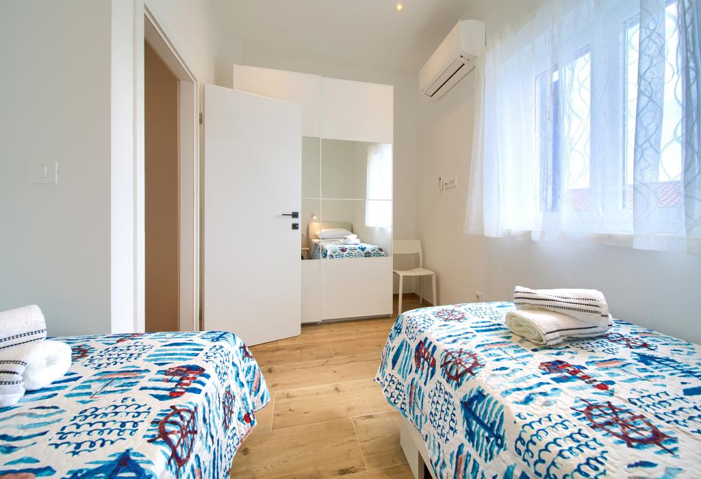 Nowocześnie wyposażone apartamenty w spokojnej okolicy, położone w centrum miasta. Apartament jest dwupoziomowy, o łącznej powierzchni 70 m². Na piętrze znajdują się sypialnie, każda z własną łazienką. Na parterze znajduje się przestronna kuchnia z salonem i mała toaleta. Nieruchomość znajduje się 2 minuty spacerem od plaży, sklepów i centrum. Powierzchnia całkowita apartamentu wynosi 70 m². Na terenie posesji znajduje się bezpłatny parking na trzy samochody. Zwierzęta domowe są akceptowane po uprzednim uzgodnieniu i pod stałym nadzorem właściciela.