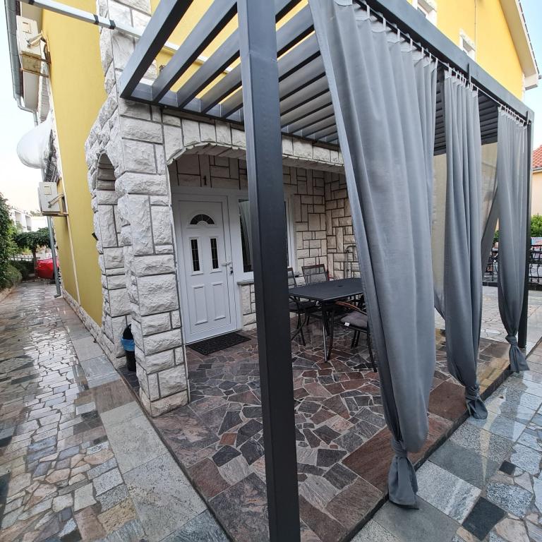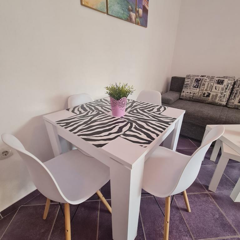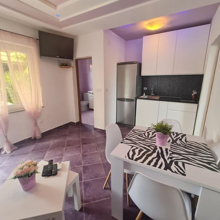 Dom położony jest w spokojnej części Njivicy na wyspie Krk, 500 m od morza i jest bardzo odpowiedni na rodzinne wakacje. Jest szczególnie odpowiedni dla dzieci, ponieważ jest ogrodzony dziedziniec i huśtawki. Przed domem znajduje się duży parking ogrodzony, dzięki czemu Twoje auto będzie bezpieczne. Do dyspozycji Gości jest również duży ogród i odkryty taras, na którym można urządzić grilla i cieszyć się cieniem przez cały dzień. Zawartość mieszkania: sypialnia z łóżkiem małżeńskim kuchnia (płyta indukcyjna, zlewozmywak, kuchenka mikrofalowa, lodówka z zamrażarką, czajnik, ekspres do kawy) klimatyzacja salon z rozkładaną sofą dla 2 osób łazienka (z pralką) balkon lub taras ze stołem i krzesłami dla relaksu i przyjemności