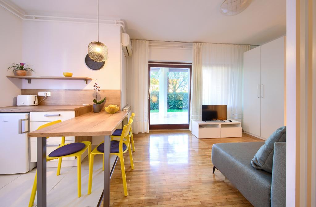 Spędziliśmy 12 dni w studio na dole. Bardzo przestronny, czysty, wyposażony we wszelkie udogodnienia, gustownie urządzony w nowoczesnym stylu. Jest też przestronna weranda, na której można spożywać posiłki i spędzać wolny czas. Ręczniki i pościel są dostępne do zmiany. Bezpłatny parking tuż obok mieszkania. Położenie godne pozazdroszczenia, rzut kamieniem od centrum i morza. Katarina, jej mąż i mama to wspaniali ludzie, zawsze pomocni i mili, a do tego mówią po włosku. Zatrzymaliśmy się z naszym 5 miesięcznym dzieckiem i bardzo nam się podobało, dzięki dużym przestrzeniom i dogodnej lokalizacji. Polecam Apartamenty Meri na wakacje w Njivice