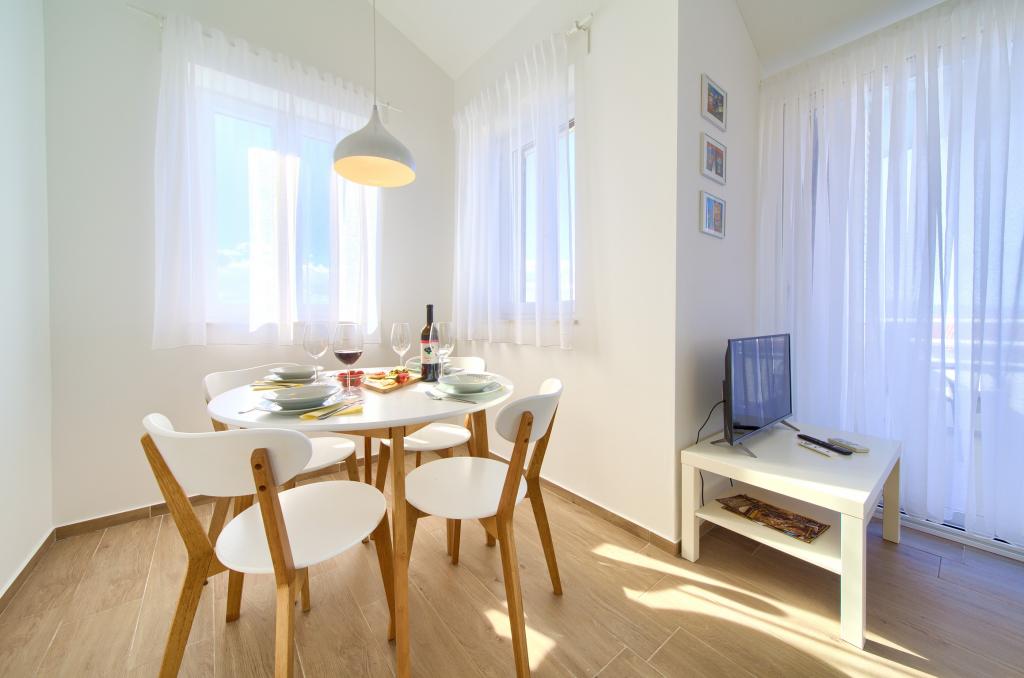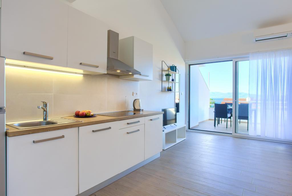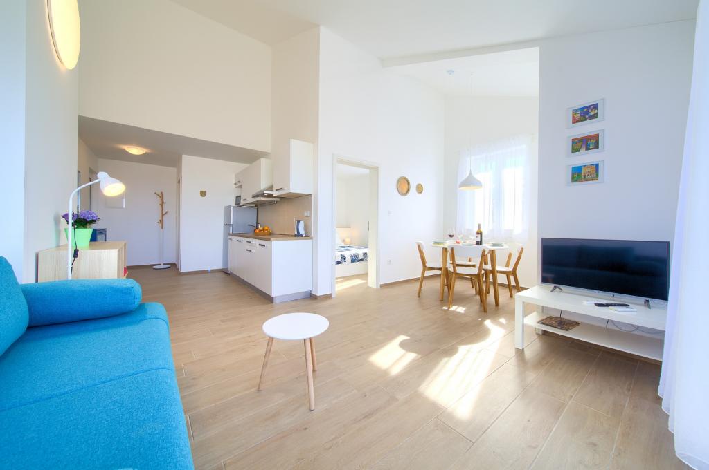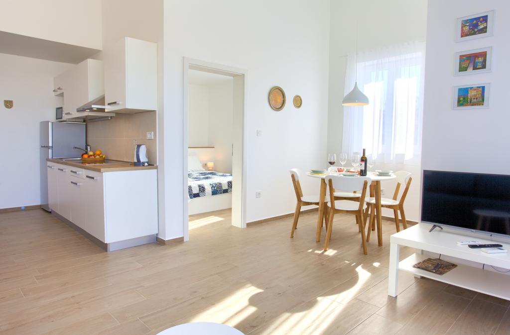 Apartamenty Meri położone są w rodzinnym domu, który znajduje się w centrum miejscowości Njivice. Położenie domu jest wybitne, obok bardzo blisko do wszystkich niezbędnych obiektów (sklepy, restauracje, apteka, lekarz, zajęć sportowych, etc.) morza i 50 metrów od plaży i. Apartamenty są odnowione w 2017 g. Każdy apartament posiada taras, gdzie można odpocząć i cieszyć się ciszą. Oba tarasy są połączone z ogrodem, który jest porośnięty roślinnością. Parking znajduje się bezpośrednio obok apartamentów.