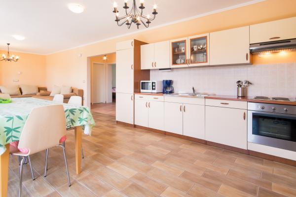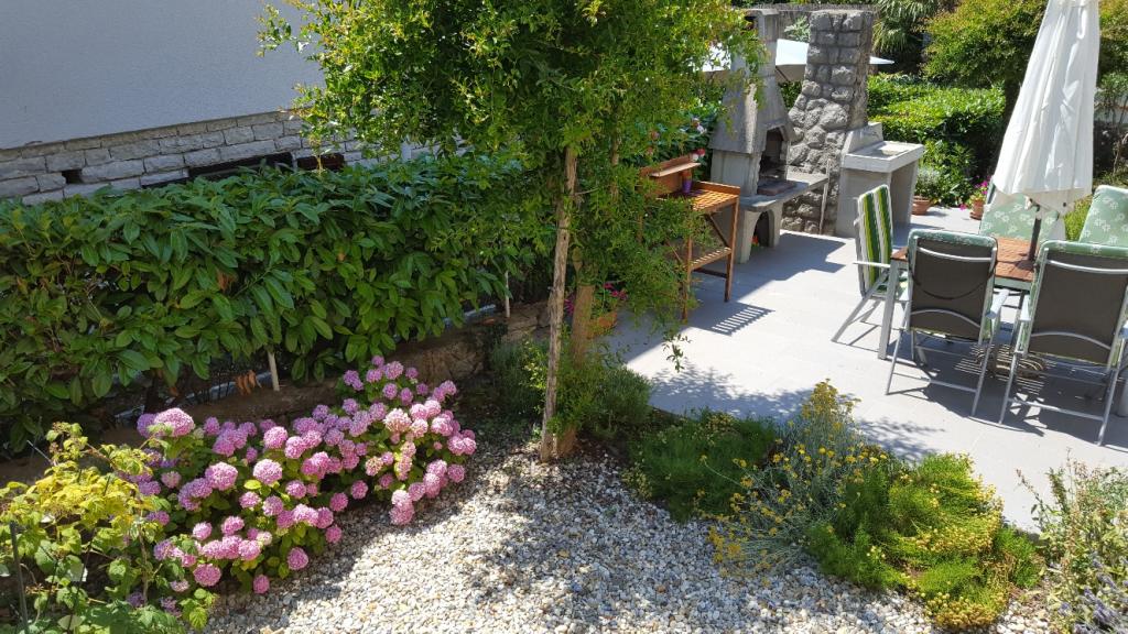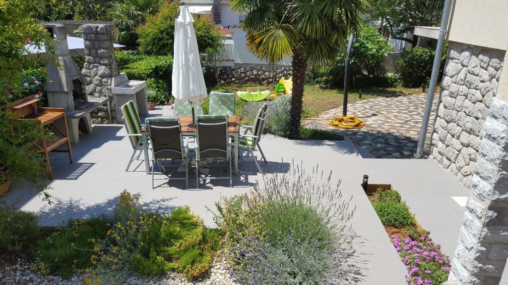 Apartament znajduje się w spokojnej okolicy miejscowości Njivice, 250 m od morza (3-4 minuty spacerem) i 700 m od centrum. Jest w pełni wyposażony w naczynia kuchenne, ściereczki i ręczniki. Apartament posiada 2 sypialnie, 2 łazienki, przestronny salon z kuchnią, balkon oraz taras z grillem w ogrodzie.