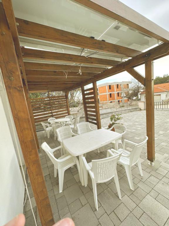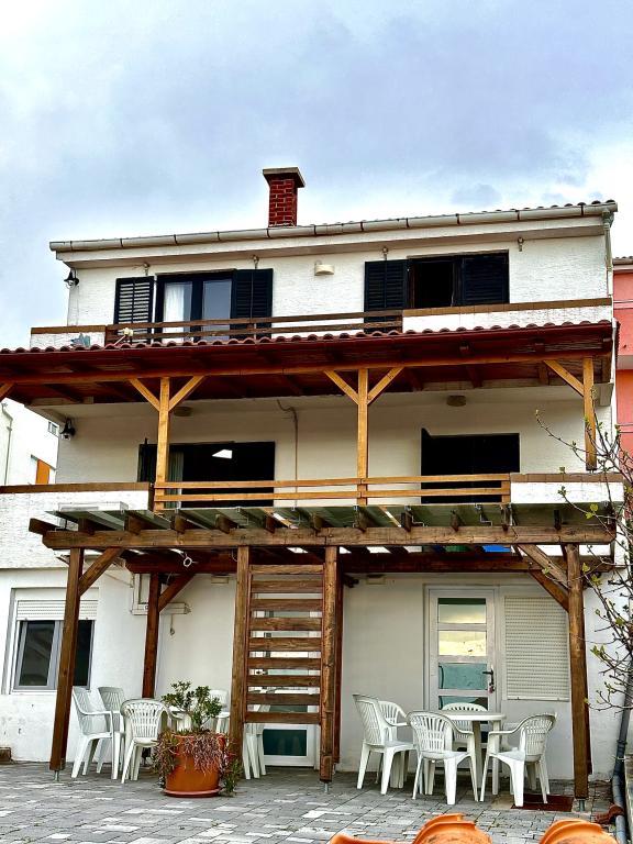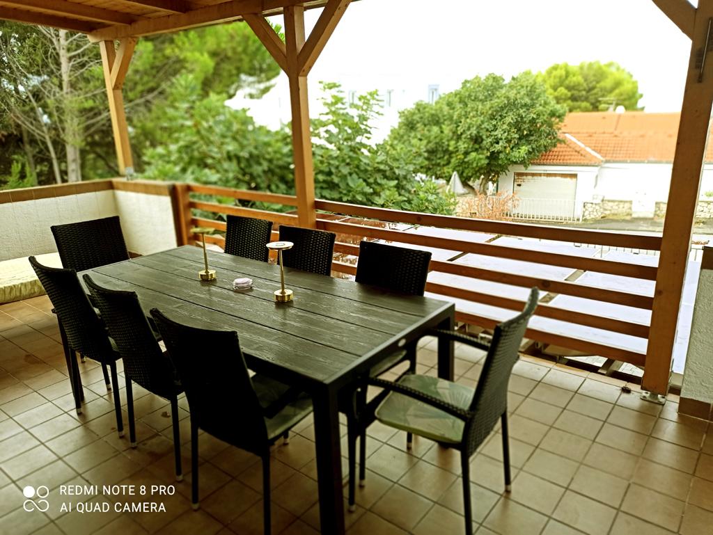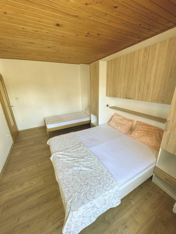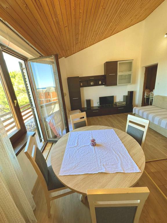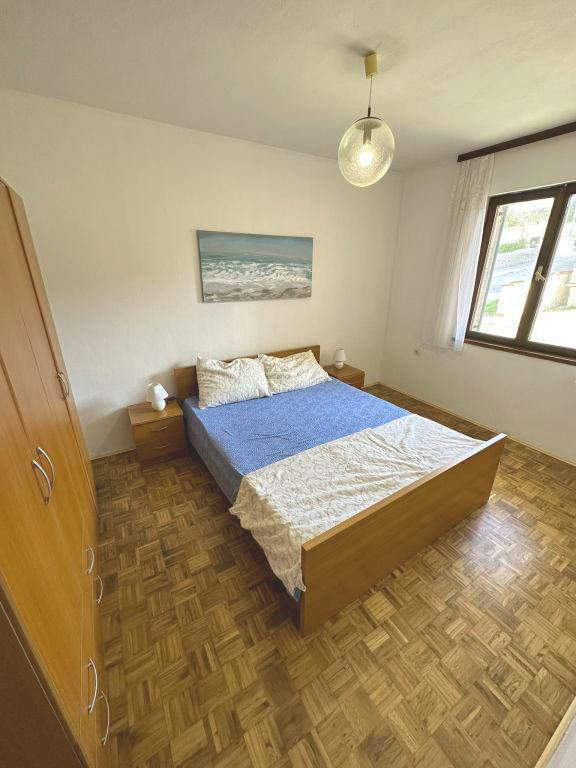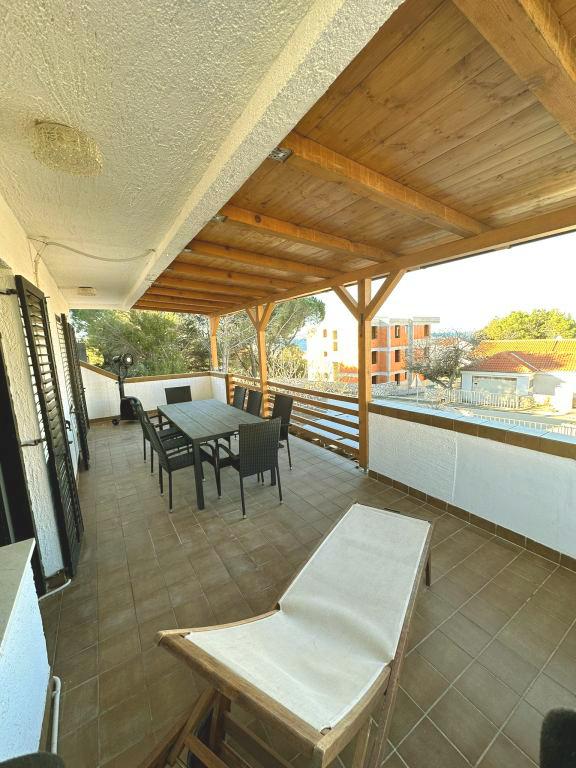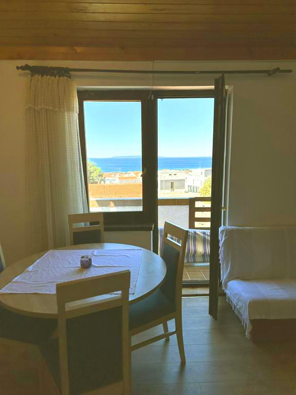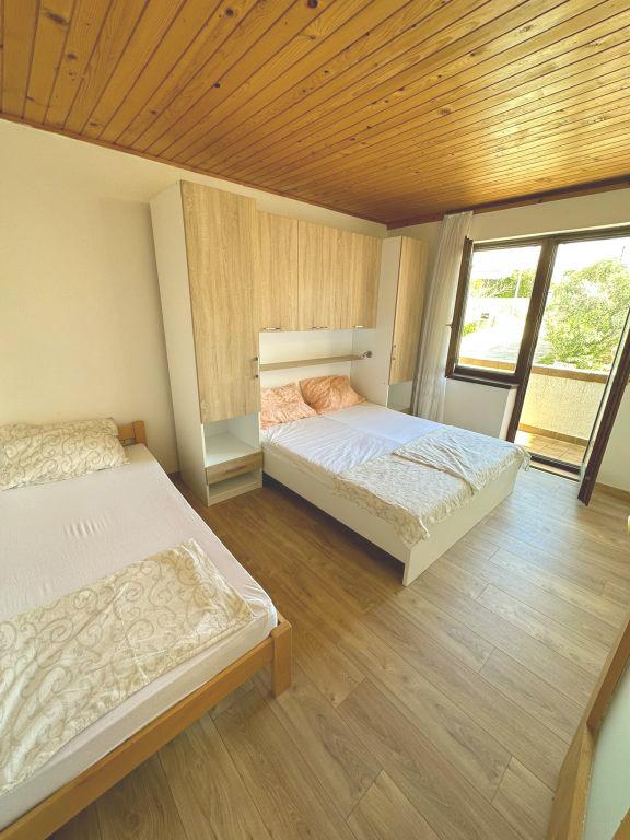 Ładnie urządzony apartament z trzema sypialniami i dodatkowym łóżkiem w salonie. Wszystkie trzy sypialnie wyposażone są w podwójne łóżko i szafę do przechowywania ubrań. Duży salon połączony z kuchnią. Mieszkanie posiada duży taras z widokiem na morze. Przy apartamencie istnieje możliwość skorzystania z grilla. Dla gości przewidziano miejsce parkingowe na podwórzu oraz w bezpośrednim sąsiedztwie apartamentu.