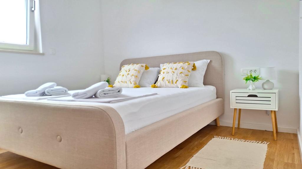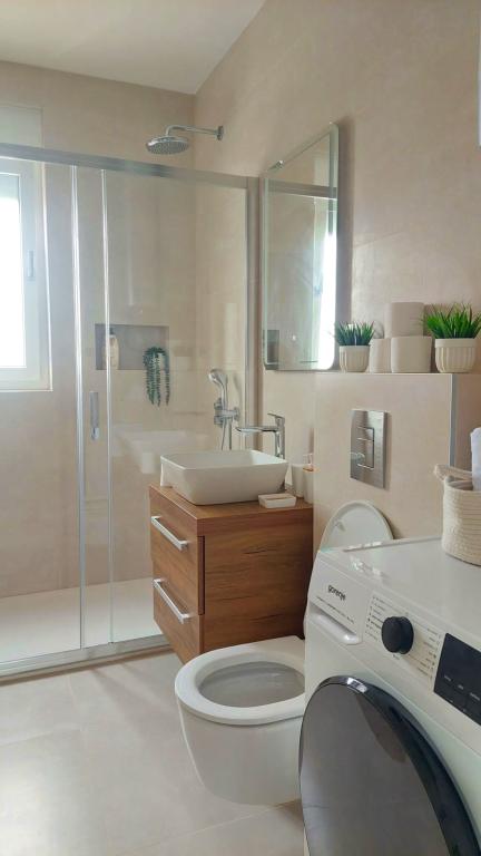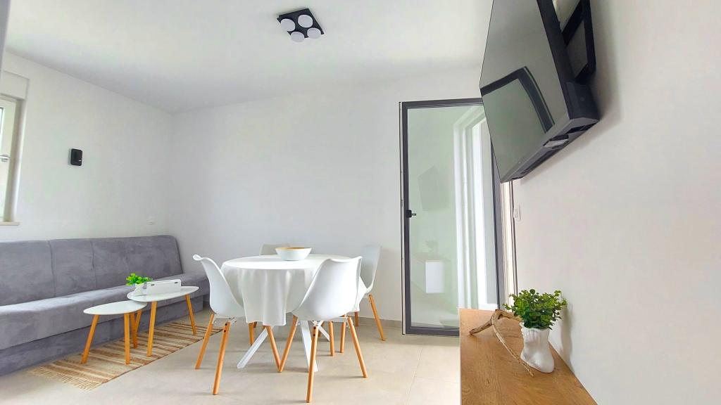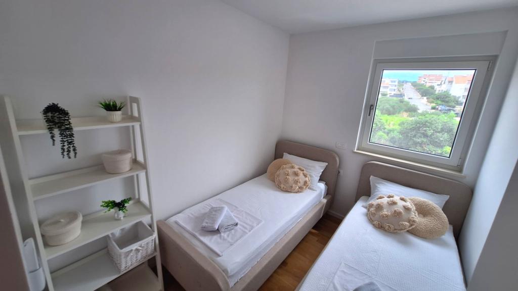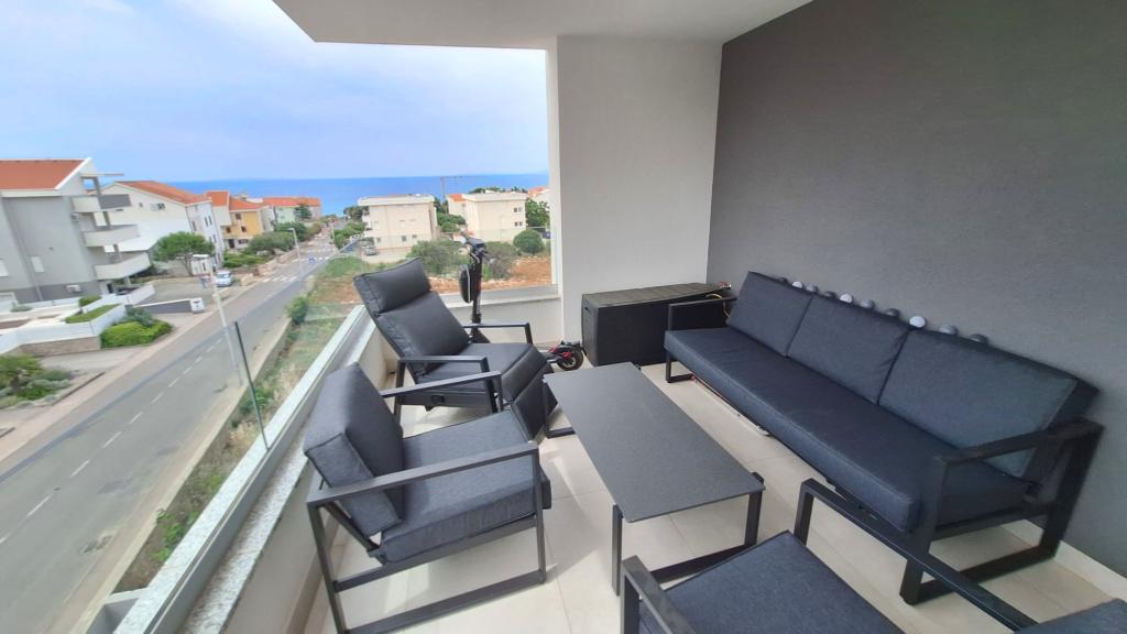Apartament znajduje się w nowym budynku w Novalji i oferuje piękny widok na morze. Jest w pełni wyposażony w nowe, nowoczesne meble, które zapewniają komfortowy i beztroski pobyt. Każdy pokój jest klimatyzowany, a w całym apartamencie zainstalowano ogrzewanie podłogowe. Goście mają do dyspozycji prywatny parking oraz w pełni wyposażoną kuchnię do przygotowywania posiłków. Do dyspozycji Gości jest deska SUP i hulajnoga elektryczna. Plaża oddalona jest o zaledwie 350 metrów, a centrum Novalji o 1,5 km. Sklep znajduje się po drugiej stronie ulicy, co dodatkowo zwiększa wygodę pobytu.
