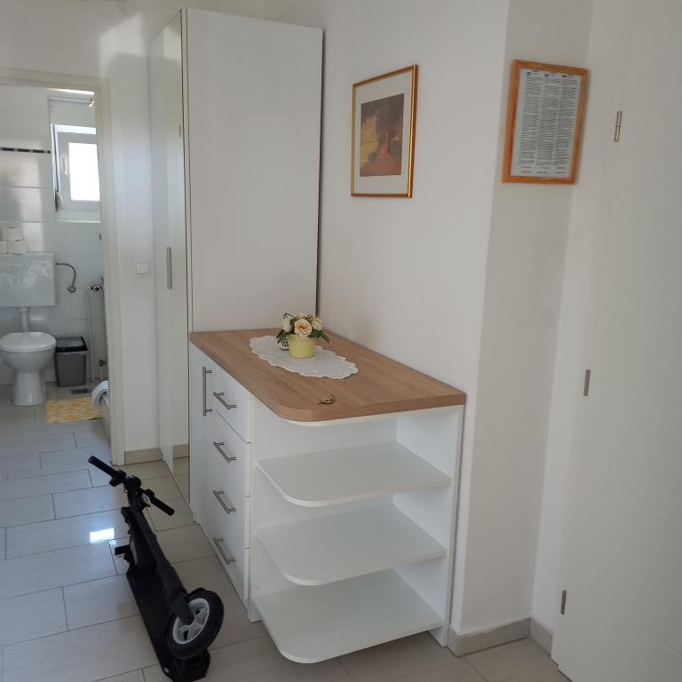 Apartament jest bardzo ładny, nowy i dobrze umeblowany. Ma wszystko, czego potrzeba do gotowania, a także piękny balkon idealny do spożywania posiłków. Ponadto, znajduje się w północno-zachodniej części budynku, dzięki czemu nie jest nagrzewany przez słońce. Lokalizacja jest wyjątkowa, zaledwie 100 metrów od morza, idealna na spacery na plażę lub po centrum Novalji. Dziękujemy, Erika, świetnie się bawiliśmy.
