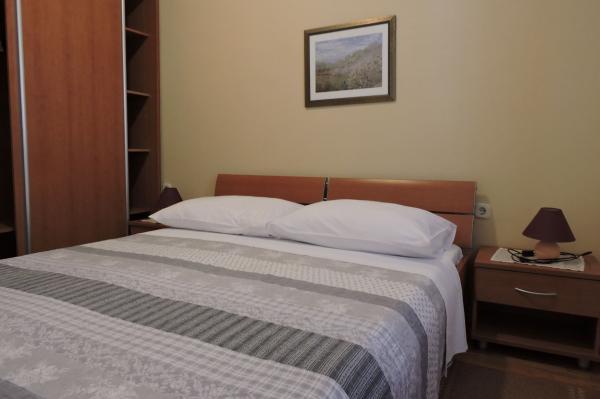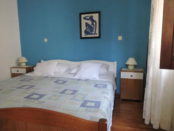 Apartamenty Ivanov znajdują się przy ulicy Ivana Palčića w Novalji, 850 m od centrum i 950 m od najbliższej plaży. Sklepy oddalone są o 700 m. Restauracja o 250 m. Poczta o 950 m, bank o 900 m. Przystanek autobusowy o 300 m. Apartamenty z widokiem na Ogród Oliwny są nowoczesne i w pełni wyposażone w telewizję satelitarną, klimatyzację i bezprzewodowy internet. Przed domem znajduje się bezpłatny parking. Wielu gości oceniło swój pobyt w Apartamentach Ivanov na 9,4. Przychodnia lekarska i apteka znajdują się 300 m od Apartamentów Ivanov. 3 apartamenty jednopokojowe posiadają: przedpokój z garderobą, łazienkę z prysznicem i umywalką. Do dyspozycji Gości są mydło, szampony i suszarka do włosów. W sypialni znajduje się łóżko małżeńskie. W salonie znajduje się kuchnia, telewizor i klimatyzacja. Balkon wyposażony jest w zestaw mebli, stół i krzesła. 1 apartament z dwiema sypialniami ma dwie sypialnie i dwa balkony, łazienkę, korytarz i salon z kuchnią.