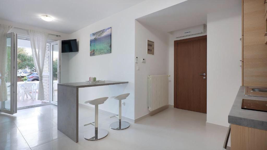 Szanowni Goście, witamy na stronie internetowej, na której prezentujemy ofertę noclegów w naszych apartamentach. Apartamenty Optima to nowocześnie wyposażone apartamenty, całkowicie odnowione w 2021 roku. Pokoje w apartamentach wyposażone są w łóżka o standardzie hotelowym, a kuchnie są w pełni wyposażone w kompletny sprzęt kuchenny. Apartamenty posiadają strzeżony parking, Wi-Fi, TV, klimatyzację, a na standardowym wyposażeniu znajdują się ręczniki i pościel. Apartamenty zlokalizowane są 5 minut spacerem od centrum i plaży. W pobliżu budynku znajdują się sklepy i restauracje, a apartamenty znajdują się 500 m od centrum Novalji.