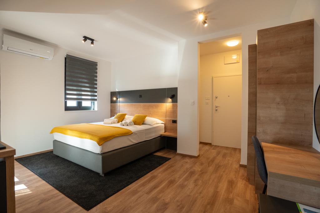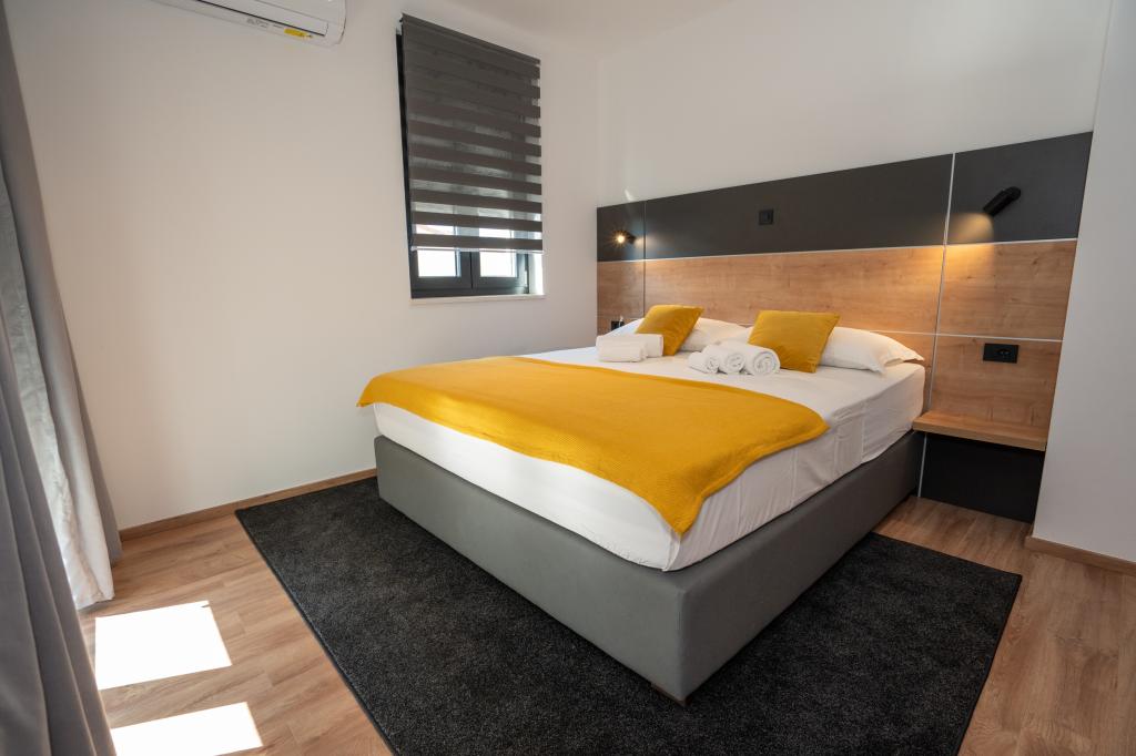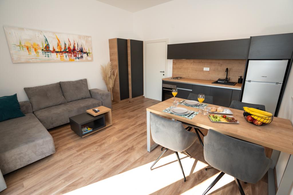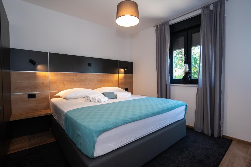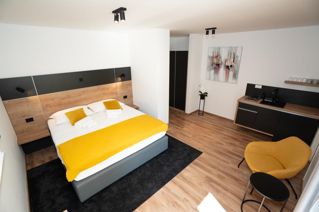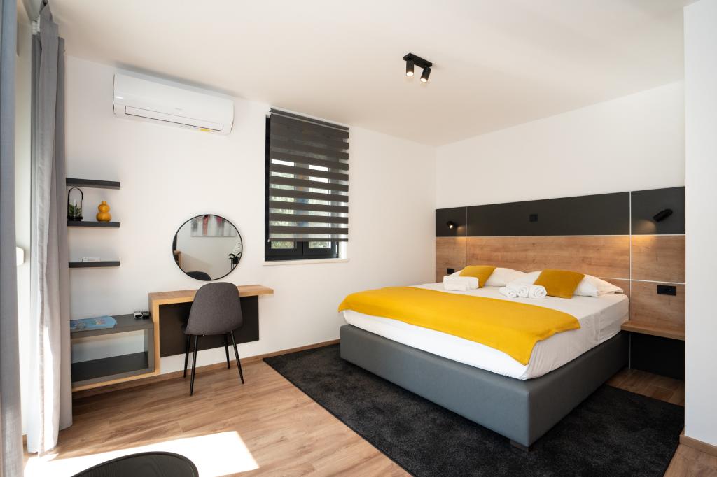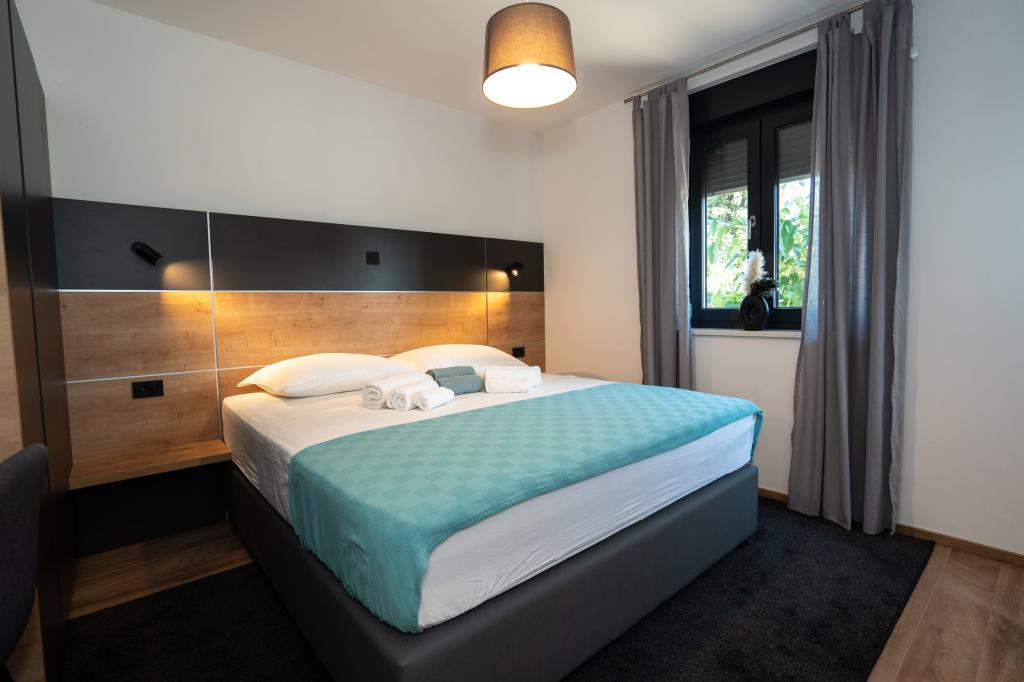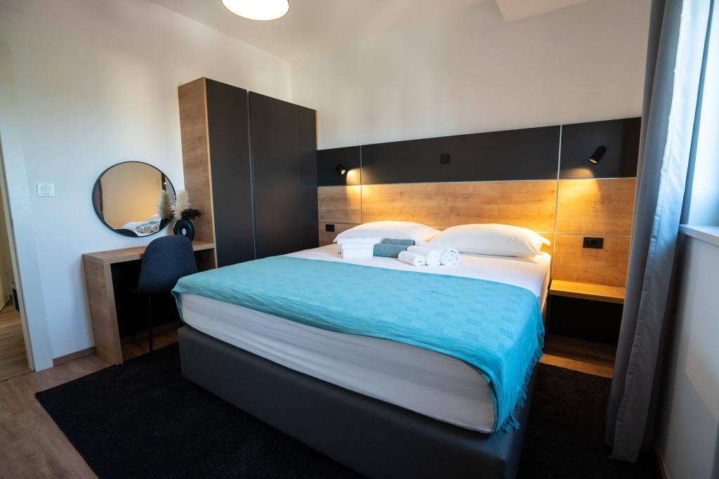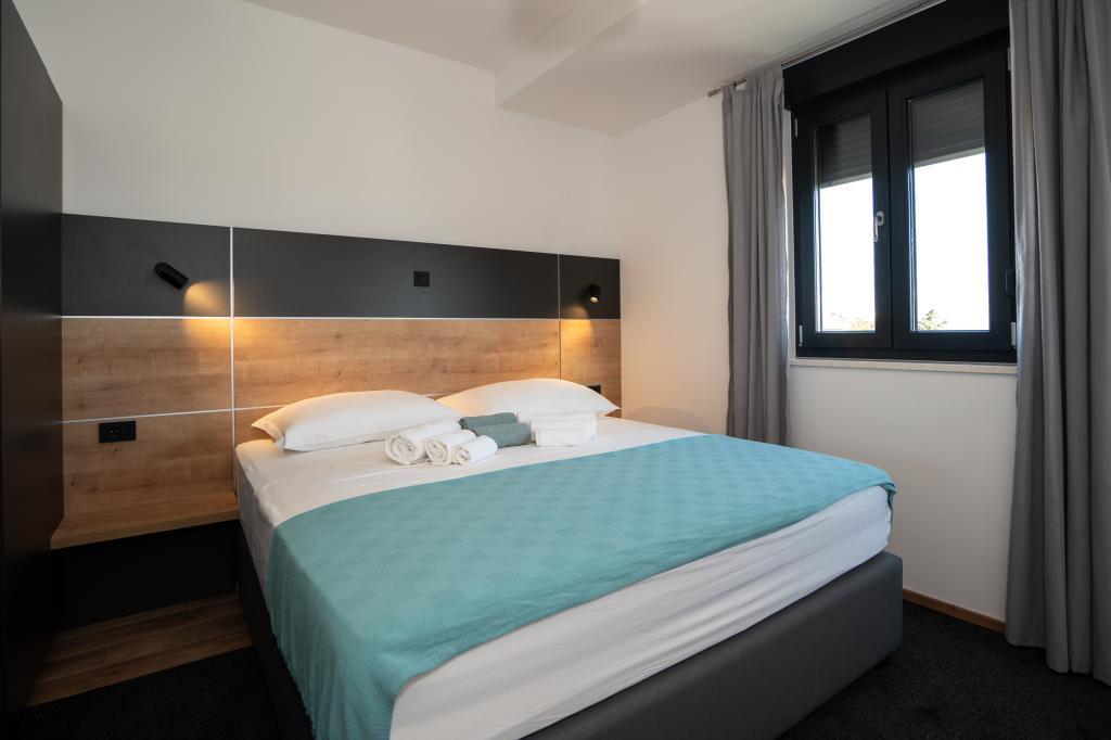 Ciesz się komfortem i elegancją naszych nowocześnie wyposażonych pokoi i apartamentów wysokiej klasy. Wszystkie obiekty noclegowe są sklasyfikowane jako 4 gwiazdki i wyposażone zgodnie ze standardami hotelowymi w starannie dobrane meble i wysokiej jakości sprzęt. Idealne na podróże służbowe, wakacje z rodziną lub letni relaks - Twój idealny pobyt w Novalji zaczyna się tutaj! I 4 gwiazdki - potwierdzenie jakości I Nowoczesne wyposażenie i design I Apartamenty z jedną sypialnią I Dwa dodatkowe łóżka w przestronnym salonie I Bezpłatne Wi-Fi I Prywatny parking Zarezerwuj teraz i doświadcz najwyższego komfortu! UWAGA: Dodatkowe łóżka w salonie mogą być używane tylko przez dzieci poniżej 12 roku życia.