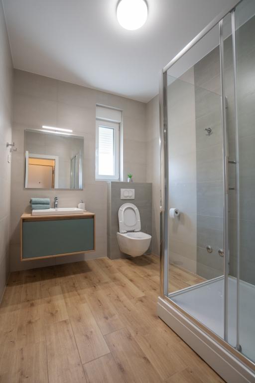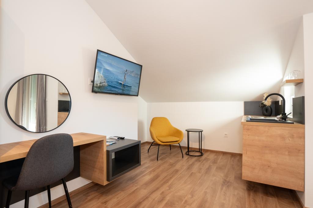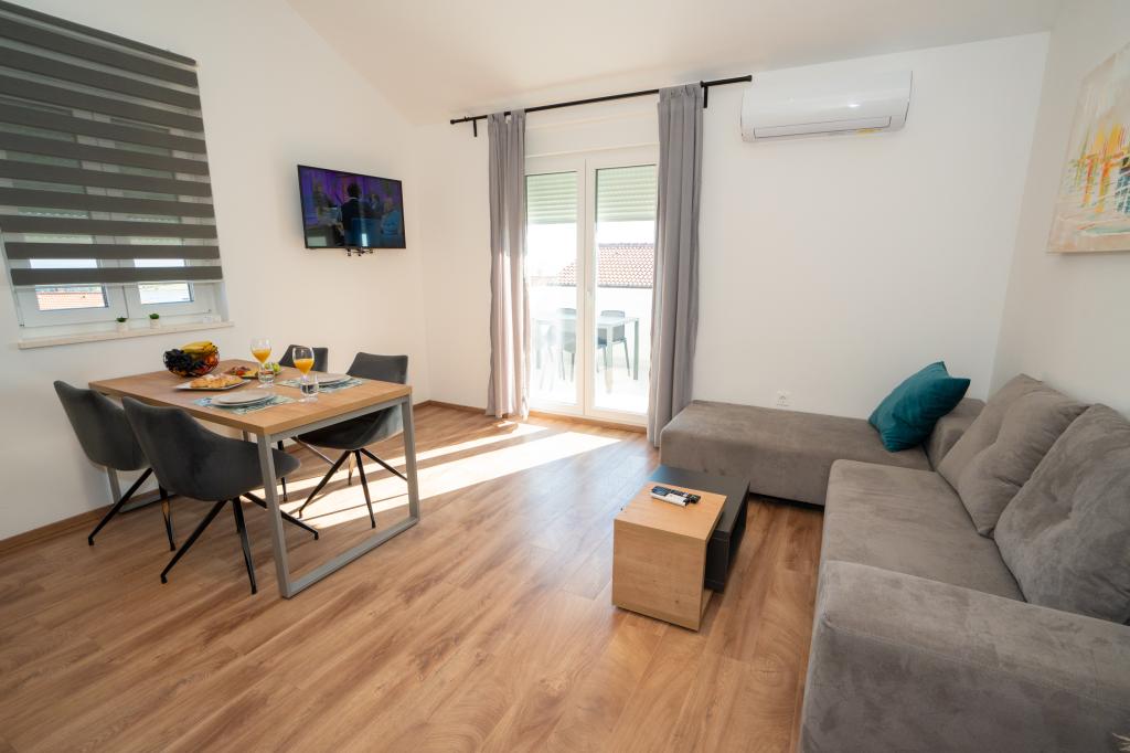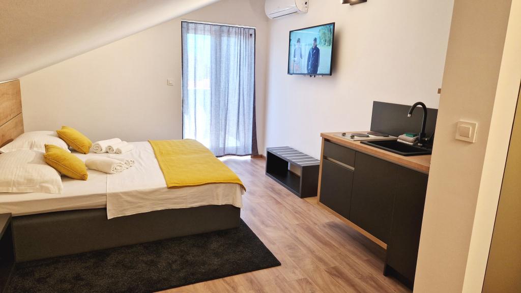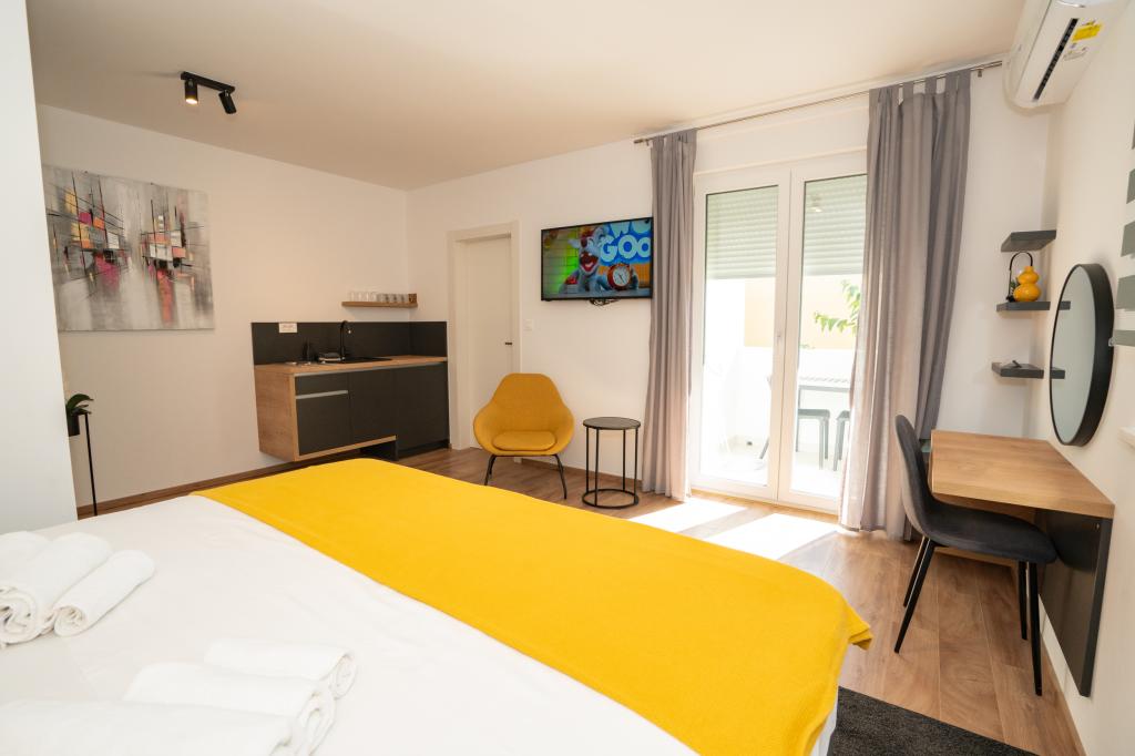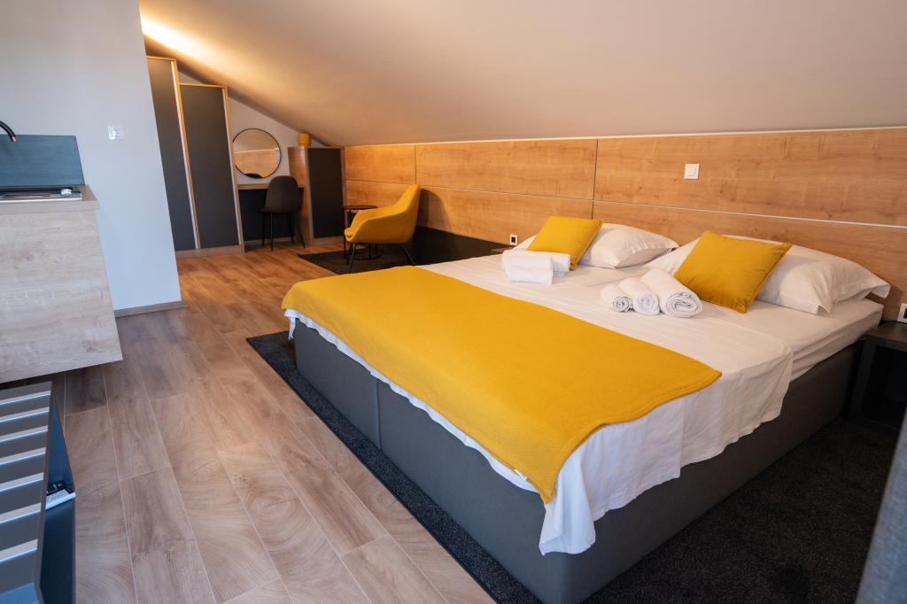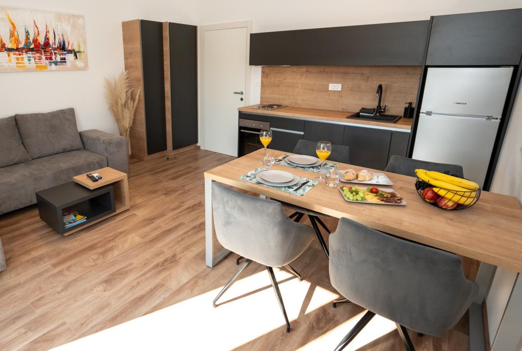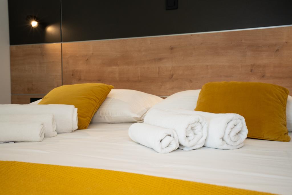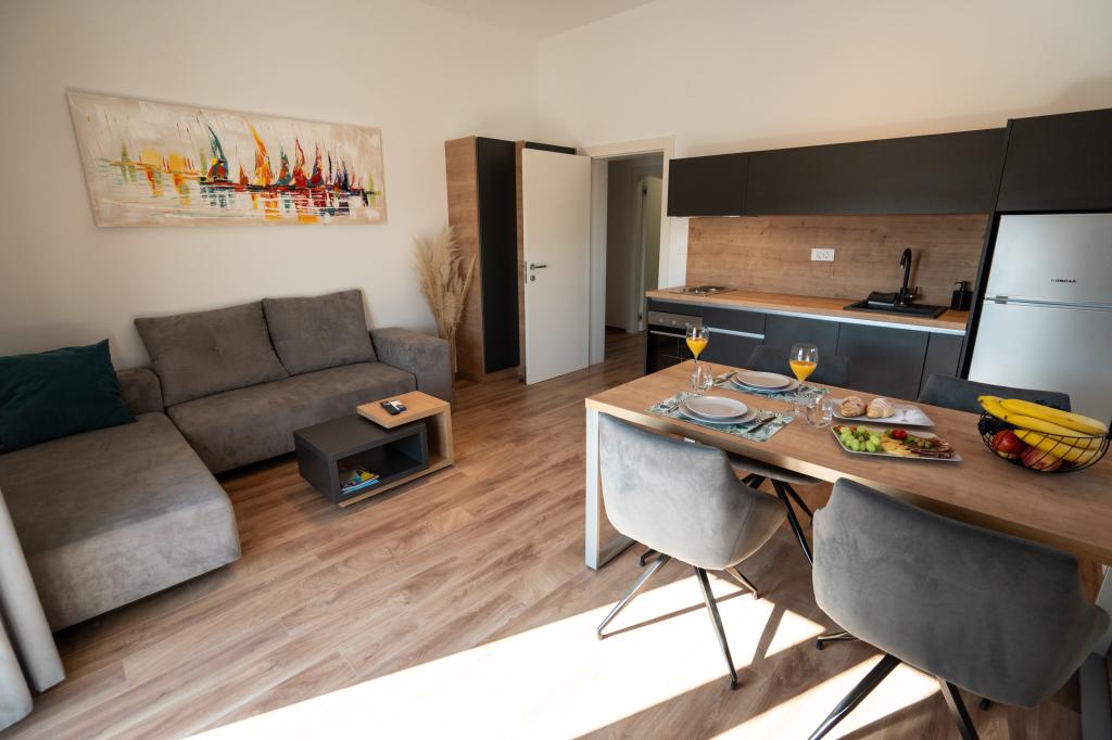 Ciesz się komfortem i elegancją naszych nowocześnie wyposażonych pokoi i apartamentów wysokiej klasy. Wszystkie obiekty noclegowe są sklasyfikowane jako 4 gwiazdki i wyposażone zgodnie ze standardami hotelowymi w starannie dobrane meble i wysokiej jakości sprzęt. Idealne na podróże służbowe, wakacje z rodziną lub letni relaks - Twój idealny pobyt w Novalji zaczyna się tutaj! I 4 gwiazdki - potwierdzenie jakości I Nowoczesne wyposażenie i design I Apartamenty z jedną sypialnią I Dwa dodatkowe łóżka w przestronnym salonie I Bezpłatne Wi-Fi I Prywatny parking Zarezerwuj teraz i doświadcz najwyższego komfortu! UWAGA: Dodatkowe łóżka w salonie mogą być używane tylko przez dzieci poniżej 12 roku życia.