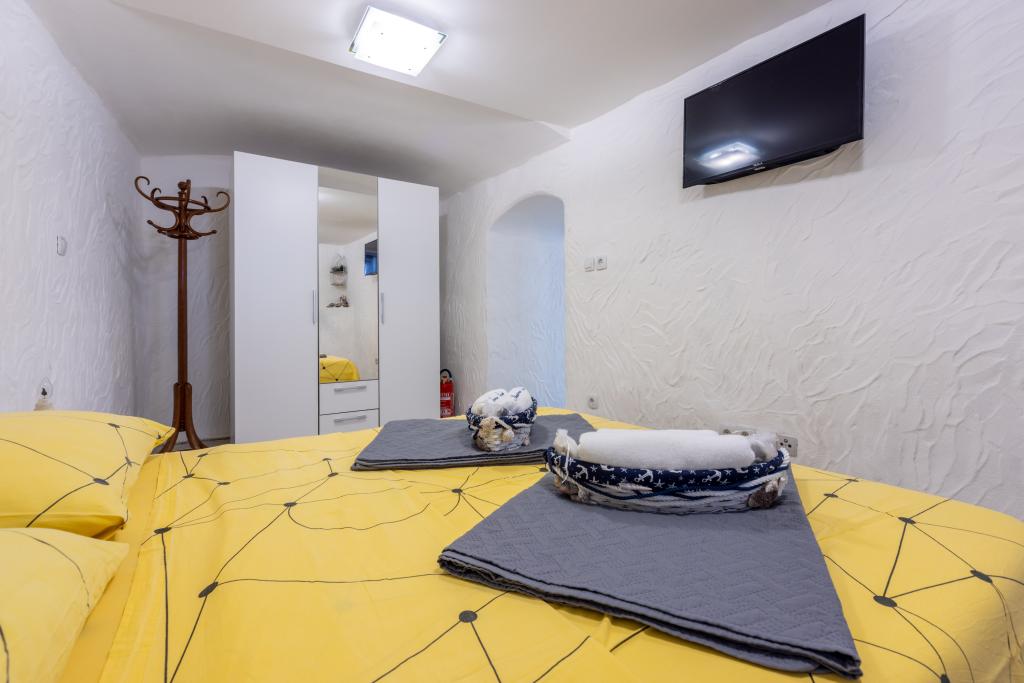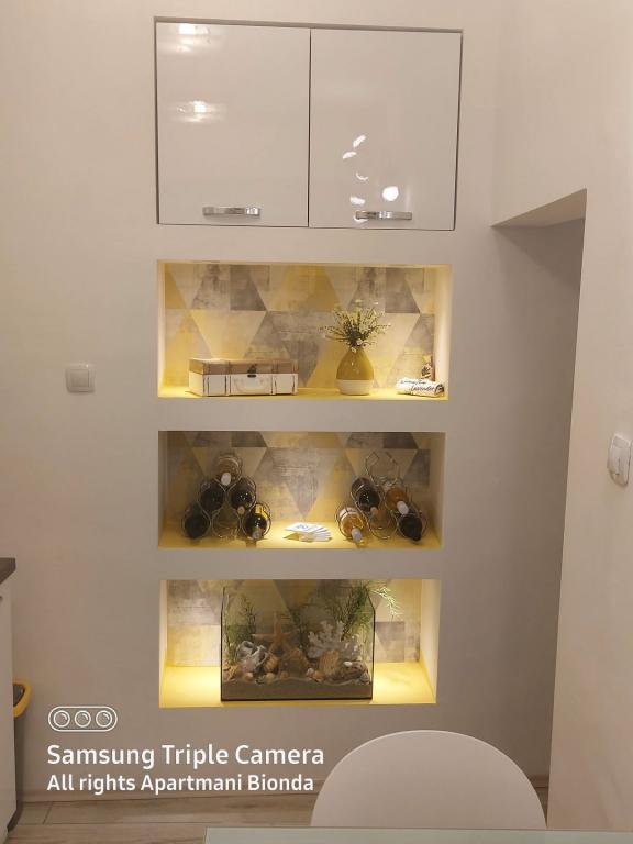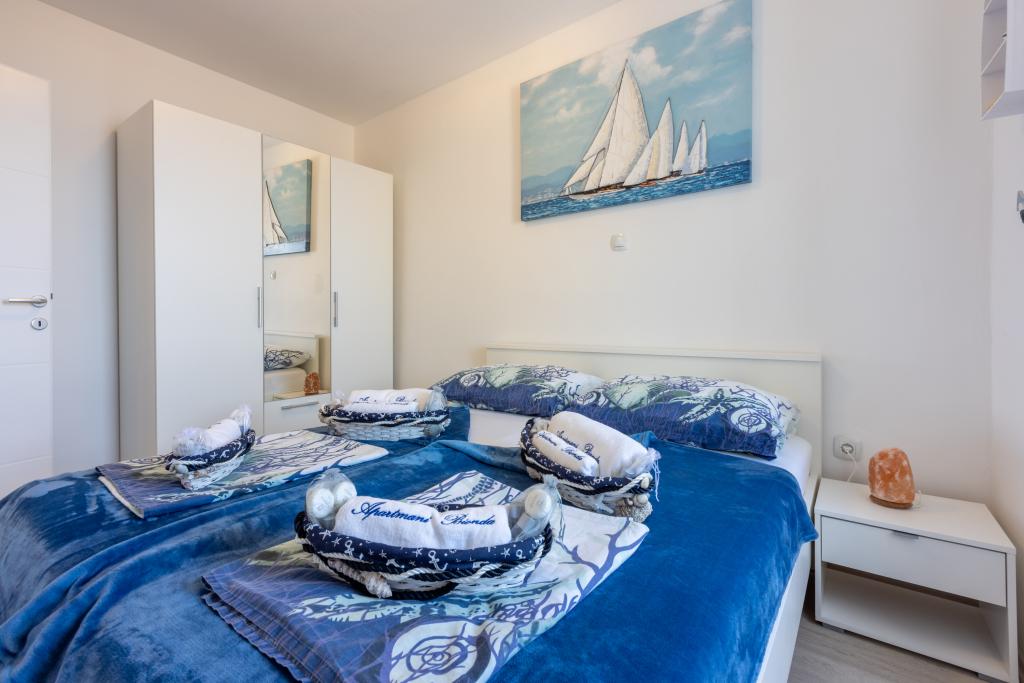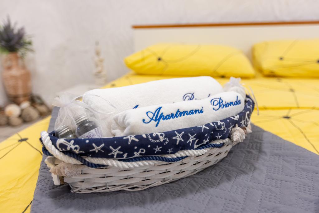 Apartament Bionda ma powierzchnię około 50m2 i składa się z kuchni, łazienki, salonu oraz sypialni. Przeznaczony jest dla maksymalnie 4 osób, w sypialni znajduje się podwójne łóżko, aw salonie rozkładana sofa o wymiarach 160x200cm. Mieszkanie znajduje się w centrum miasta, na jego starówce, nie ruchliwej. Od morza dzieli Cię zaledwie 20 stopni, a od centralnego placu tylko około 50 m. Mieszkanie jest klimatyzowane iw pełni wyposażone do codziennych potrzeb. (telewizor LED w salonie i sypialni, kuchnia wyposażona w piekarnik, płytę grzewczą, lodówkę z zamrażarką, parasol do dyspozycji, pościel zmieniana co tydzień) Podczas pobytu u nas otrzymujesz bilet parkingowy w ogólnodostępnym parking.