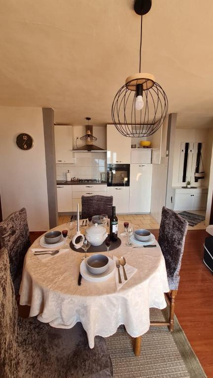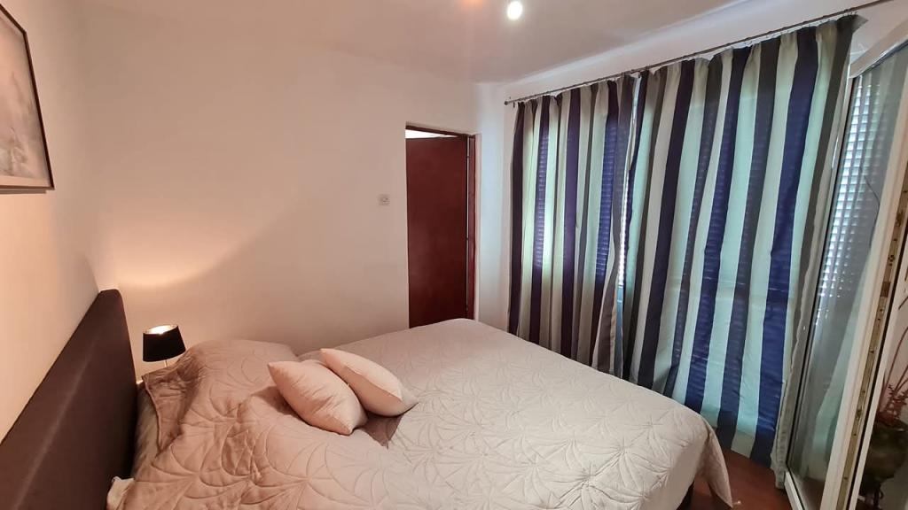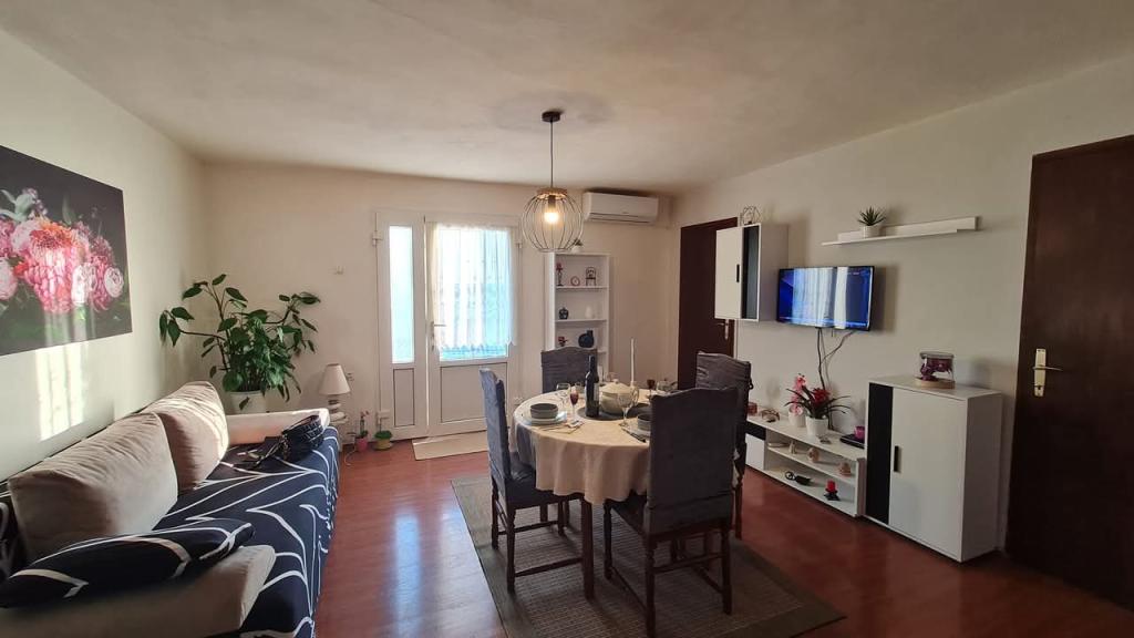 Wyposażony apartament z dwiema dużymi sypialniami, kuchnią, salonem, łazienką i pięknym dużym tarasem z widokiem na morze i centrum miasta. Wyposażone we wszystkie sprzęty AGD (pralka, zmywarka, mikrofalówka, toster, piekarnik, czajnik, grill elektryczny). W cenę wliczony jest parking, klimatyzacja i WiFi. Apartament położony jest 5 minut od centrum miasta i 10 minut od głównej plaży.