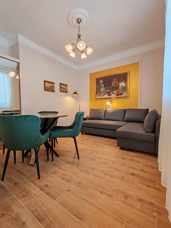 Apartament jest położony w centrum, ale jednocześnie w spokojnej okolicy. Czysty, dobrze wyposażony. Ogród jest piękny. Bardzo podobał mi się salon z ogromnym telewizorem. W ogrodzie znajduje się grill, stoły i ławki, idealne do grillowania i gry w karty. Mogę tylko polecić!!!!