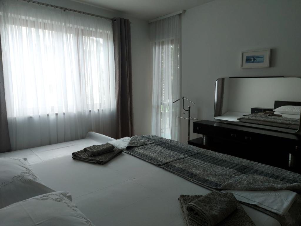 Mieszkanie o powierzchni 100 m2 znajdują się dwie przestronne sypialnie, dwie łazienki, kuchnia i pokój dzienny na odpoczynek. Mieszkanie posiada duży taras z grillem dla miłym towarzystwie. Są na parkingu w podwórzu. Goście witani są przez przyjaznych gospodarzy z drink powitalny.