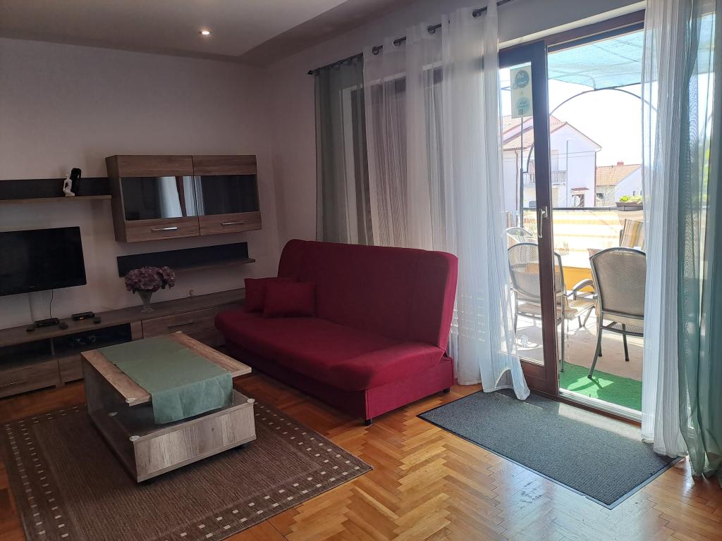 Nowocześnie urządzony dom z ogrodem i śródziemnomorskim ogrodem, położony w spokojnej części miejscowości Novi Vinodolski. Mieszkanie znajduje się na pierwszym piętrze. Posiada duży taras z widokiem na morze i grillem oraz miejsc parkingowych. Idealnym miejscem do spędzenia rodzinnych wakacji.