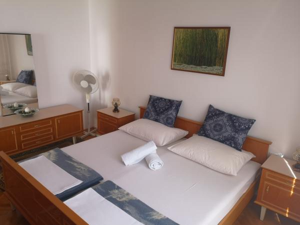Apartament Vesna znajduje się pięć minut spacerem od morza i pięknego parku i 10 minut spacerem do centrum miasta. Goście mają apartament dla 6 osób z 2 dostawkami. Parking dla minimum 2 samochodów jest dostępny i goście mogą również korzystać z tylnego tarasu z kominkiem. Mieszkanie jest wyposażone w trzy sypialnie, łazienka, WC, salon i kuchnia, taras z pięknym widokiem na morze o powierzchni 12 m2 i klimatyzacją, lodówką, telewizją satelitarną oraz pralką i zmywarką. Mile widziane.