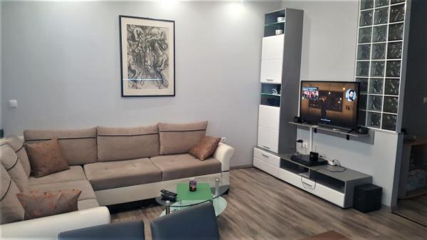 Opłata jest wliczone w cenę.W cenę wliczony jest drink powitalny. Apartament jest klimatyzowany i wyposażony w telewizor SMART TV oraz kino domowe w salonie z dostępem do sieci Wi-Fi, z nowoczesną kuchnią. Połączona, bez ścianek działowych przestrzeń o powierzchni 35 m², składająca się z salonu, kuchni z jadalnią, loggii i korytarza, zapewnia komfort nawet 6 osobom jednocześnie. Sypialnia wyposażona jest w duże łóżko i szafę do przechowywania ubrań, a pokój dziecięcy w dwa oddzielne łóżka i telewizor. Zestaw mebli w salonie, po rozłożeniu, zapewnia miejsce do spania dla dwóch osób. Łazienka wyposażona jest w pralkę i grzałkę oraz nowoczesny przepływowy podgrzewacz wody, który umożliwia prysznic dla kilku osób pod rząd. Dodatkowo, do dyspozycji jest schowek o powierzchni 4 m² do przechowywania nadmiaru rzeczy.