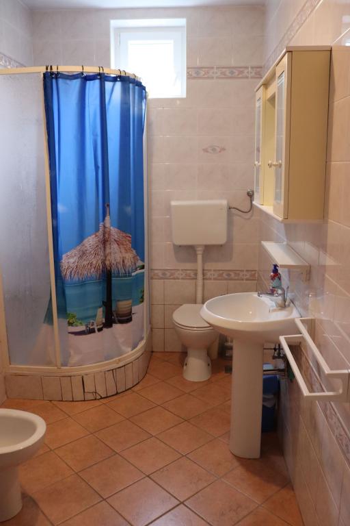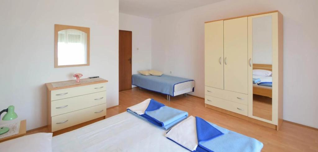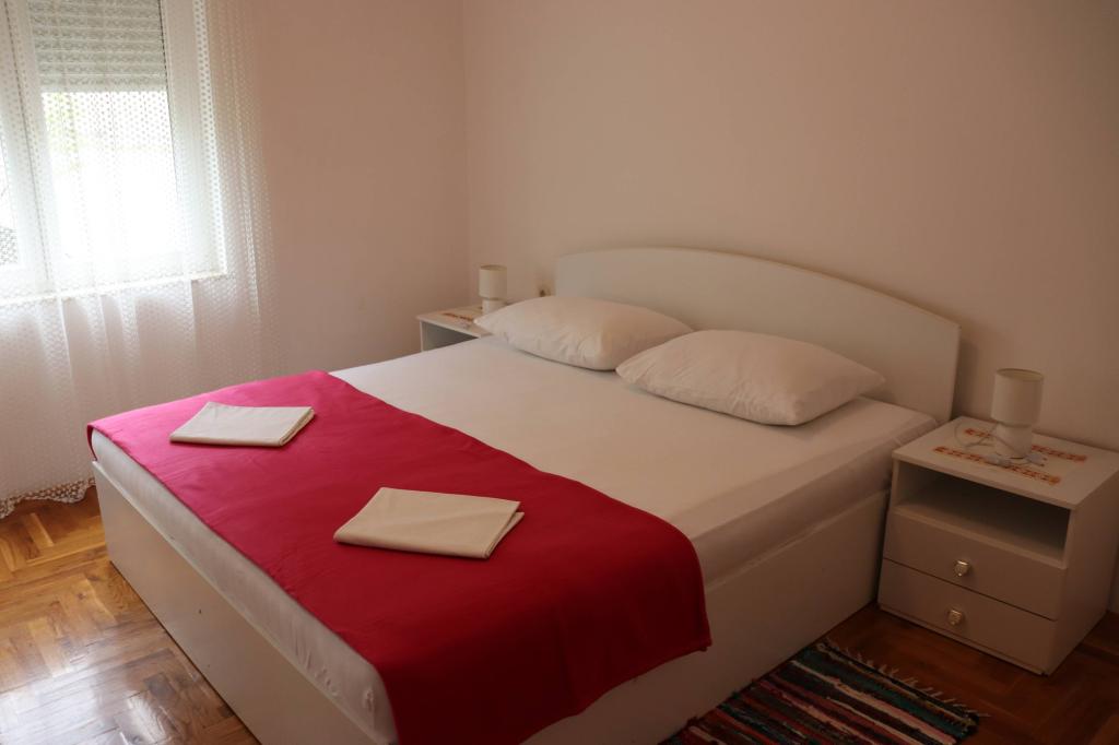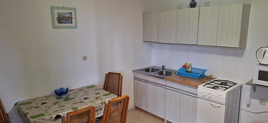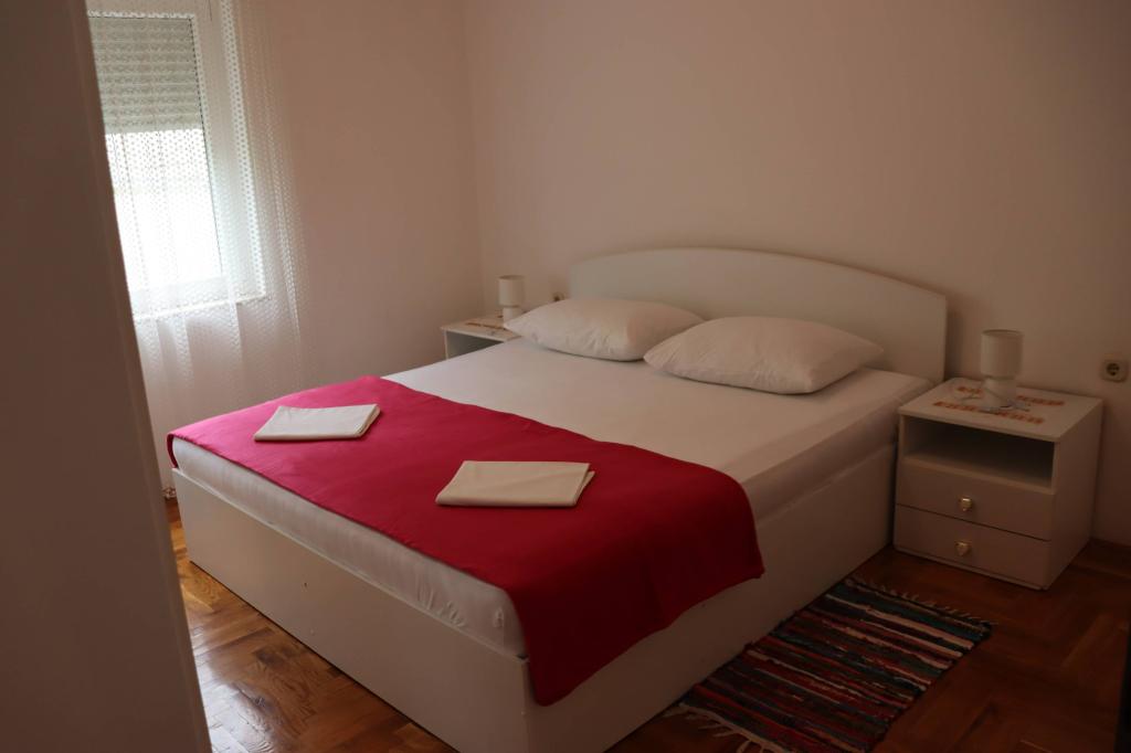 Dom rodzinny z trzema w pełni wyposażonymi apartamentami (parter, dwa piętra i poddasze). Dom położony jest w spokojnej części miasta, 5 minut spacerem od plaży i 10 minut spacerem od centrum miasta. Apartament 1 składa się z dwóch sypialni, salonu, łazienki oraz kuchni z jadalnią i balkonem. Apartament 2 posiada własny taras, dwie sypialnie, łazienkę, kuchnię i salon. Apartament 3 składa się z jednej sypialni, łazienki, kuchni oraz dwóch balkonów. Wszystkie trzy apartamenty są klimatyzowane. Do dyspozycji mieszkańców jest grill. Do wszystkich trzech apartamentów przynależy bezpieczne miejsce parkingowe na podwórku. Zapraszamy!