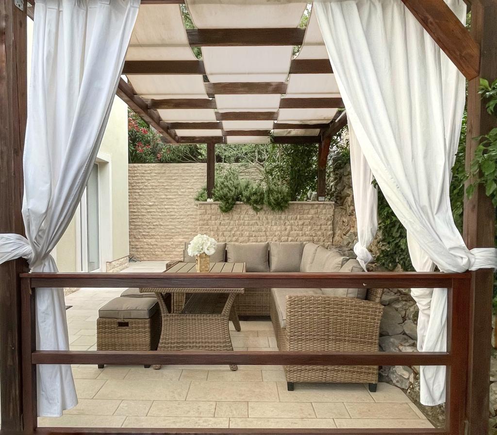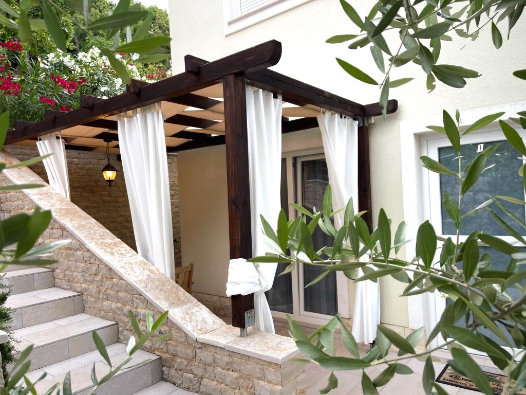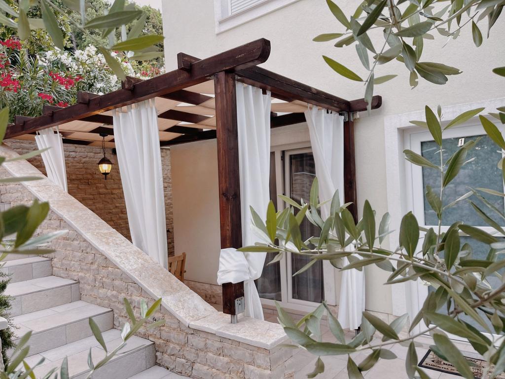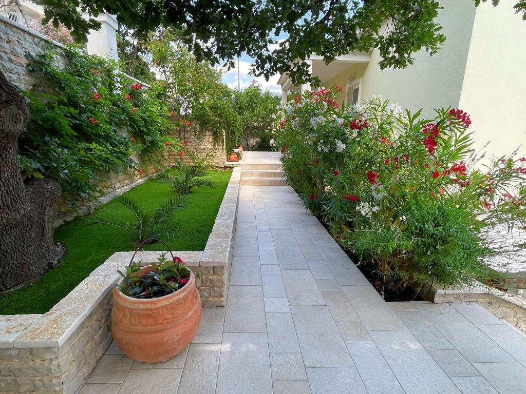 Gospodarze zasługują na czystą 10. Mieszkanie super, kuchnia wyposażona we wszystko co potrzebne, w pokoju duże łóżko, a całe mieszkanie ozdobione jest pięknymi obrazkami i drobiazgami dopełniającymi klimat. Każdy apartament w Villa Gajeta posiada piękny taras z miejscami do siedzenia, z którego roztacza się piękny widok na morze. Morze jest krystalicznie czyste i czyste, a plaże oddalone są o kilka metrów. W bezpośrednim sąsiedztwie willi znajduje się restauracja i sklep. Podczas naszego pobytu w apartamencie nie potrzebowaliśmy samochodu. Koniec lata zakończył się rejsem łodzią po gospodarzu i kąpielą na wyspie San Marino. Otoczenie willi jest bardzo ładne i zadbane, porośnięte śródziemnomorską roślinnością.