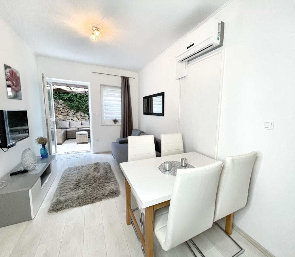 Położone w spokojnej części miejscowości Novi Vinodolski - Povila, zaledwie 60 metrów od plaży, w pełni wyposażone, klimatyzowane apartamenty rodzinne z bezpiecznym miejscem parkingowym na podwórku zapewnią Państwu niezapomniane wakacje. Oczywiście - Internet jest szybki i nieograniczony. Zrelaksuj się na jednym z dwóch tarasów grillowych lub podziwiaj zachód słońca na tarasie z leżakami. Pijesz poranną kawę z widokiem na morze.