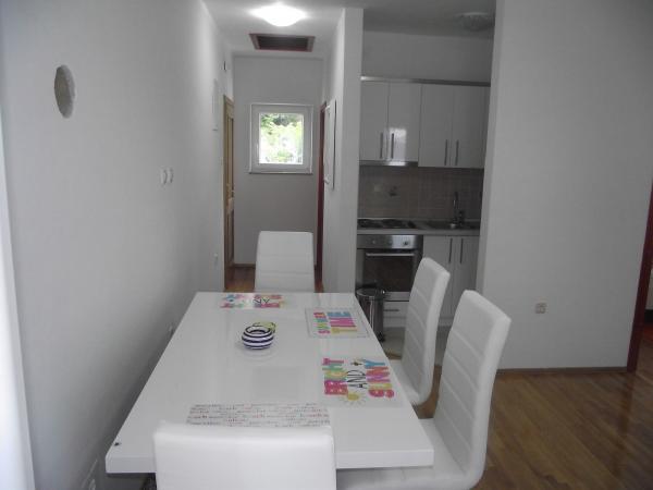 Oferujemy nowo wyremontowany dom z trzema klimatyzowanymi apartamentami. Na parterze znajduje się apartament z dwiema sypialniami, który może pomieścić do 6 osób. Na piętrze są dwa apartamenty z jedną sypialnią i każdy może pomieścić 4 osoby. Na podwórku jest miejsce do siedzenia i spotkań towarzyskich oraz grill. Dom znajduje się przy wjeździe do Novi Vinodolski od strony Rijeki i znajduje się bardzo blisko kompleksu apartamentowego Novi Resort. To jest 200 metrów od morza i 200 metrów od pierwszego sklepu.