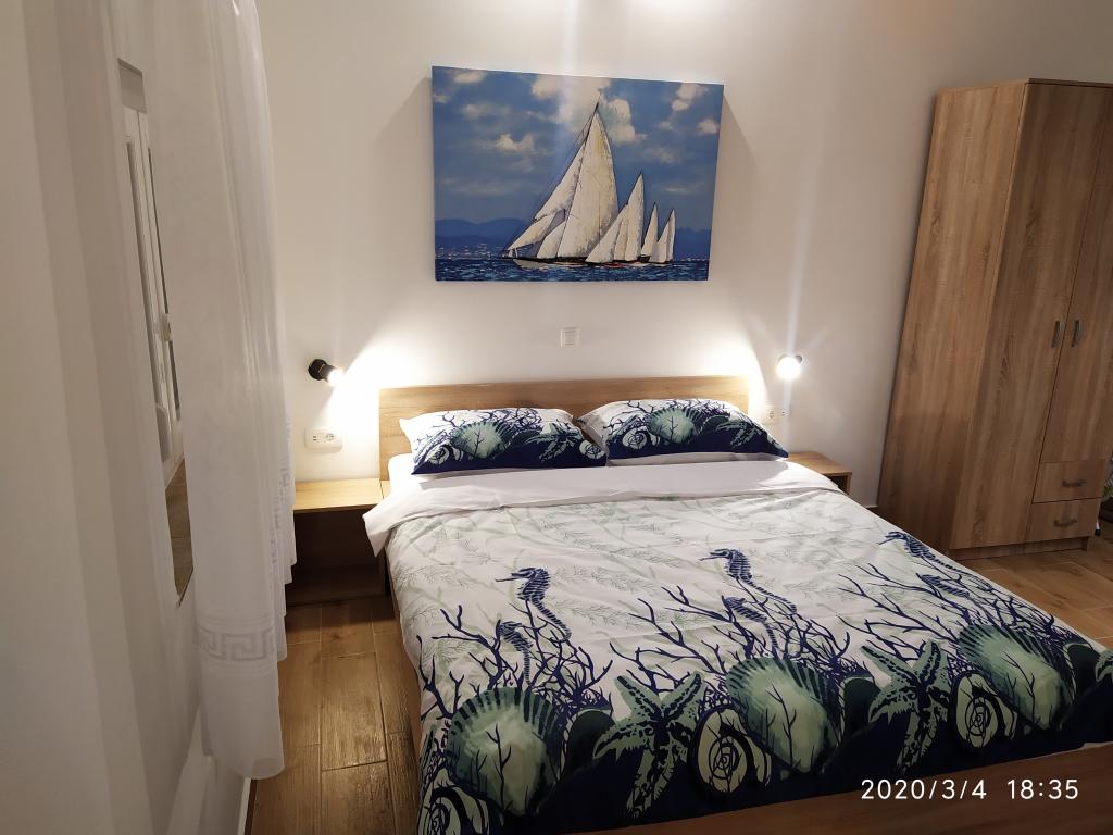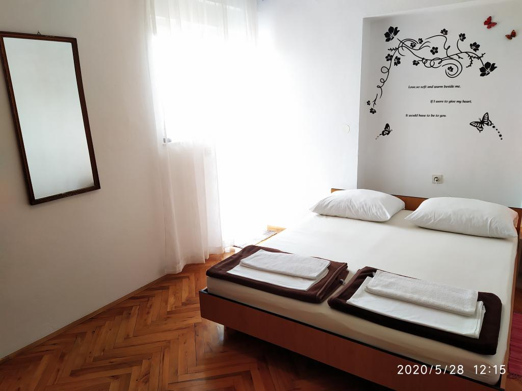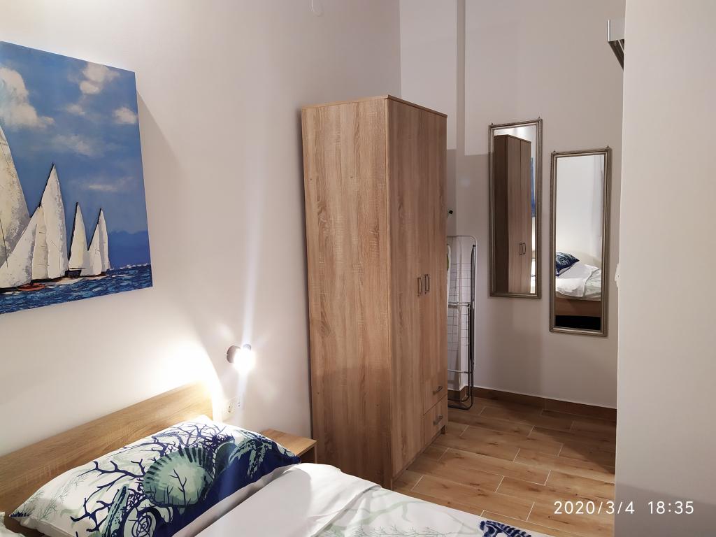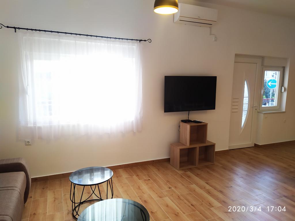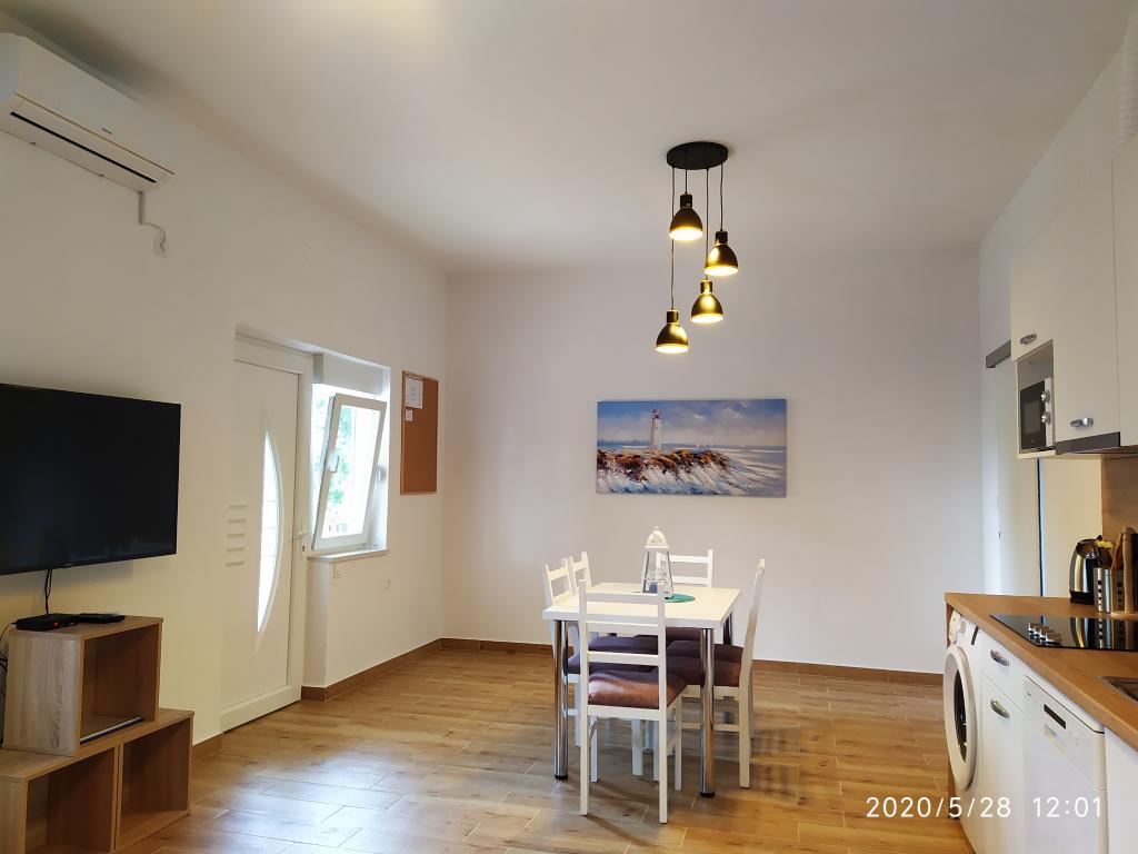 Obiekt położony jest w spokojnej części miasta, zaledwie kilka minut spacerem od centrum i 10 minut spacerem od plaży. W budynku znajdują się dwa pokoje dwuosobowe i dwa apartamenty. Pokoje znajdują się na pierwszym piętrze. Każdy pokój posiada własną łazienkę wewnątrz pomieszczenia oraz balkon. Pokoje wyposażone są w podwójne łóżko i klimatyzację. Goście decydujący się na rezerwację pokoju mają możliwość skorzystania z letniej kuchni, która wyposażona jest w kuchenkę gazową, lodówki, czajnik oraz niezbędne czarno-białe naczynia. Wi-fi, klimatyzacja, parking i korzystanie z letniej kuchni są wliczone w cenę. Korzystanie z pralki podlega opłacie w wysokości 40,00 kun za pranie. Apartamenty zostały wybudowane i urządzone w 2020 roku. Każdy apartament posiada parking, taras, klimatyzację, telewizor z Evo TV, wi-fi, suszarkę do włosów, żelazko, deskę do prasowania, kuchnię wyposażoną w kuchenkę elektryczną, okap, mikrofalę, czajnik, lodówkę, zmywarkę, pralkę oraz czarny i białych potraw.