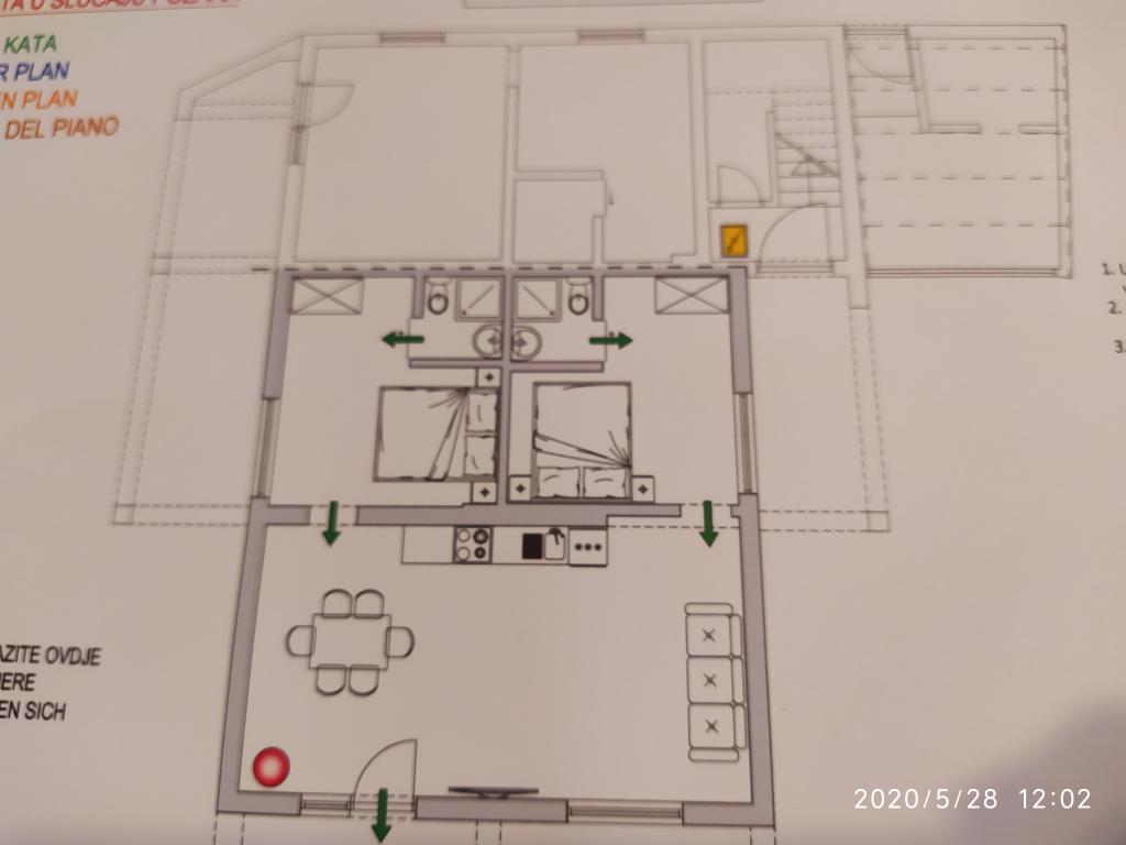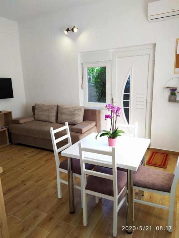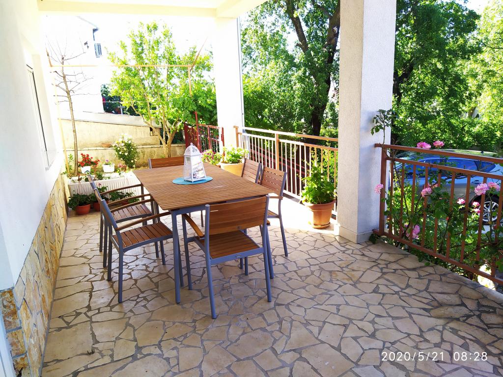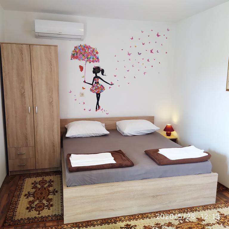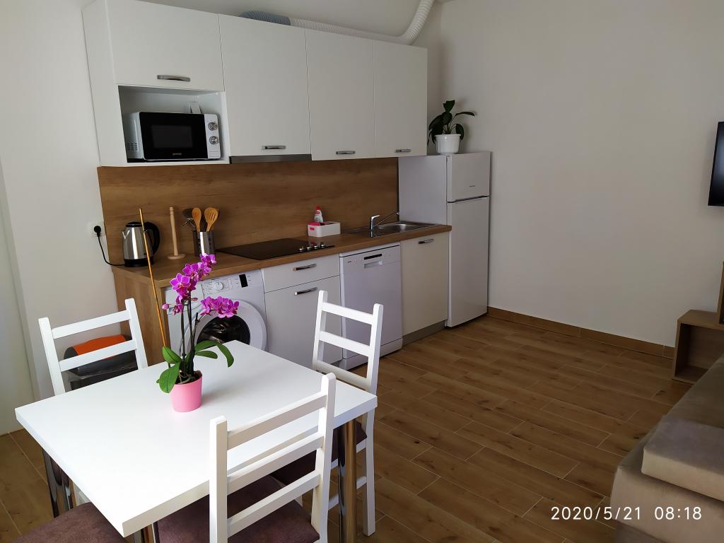 Obiekt położony jest w spokojnej części miasta, zaledwie kilka minut spacerem od centrum i 10 minut spacerem od plaży. W budynku znajdują się dwa pokoje dwuosobowe i dwa apartamenty. Pokoje znajdują się na pierwszym piętrze. Każdy pokój posiada własną łazienkę wewnątrz pomieszczenia oraz balkon. Pokoje wyposażone są w podwójne łóżko i klimatyzację. Goście decydujący się na rezerwację pokoju mają możliwość skorzystania z letniej kuchni, która wyposażona jest w kuchenkę gazową, lodówki, czajnik oraz niezbędne czarno-białe naczynia. Wi-fi, klimatyzacja, parking i korzystanie z letniej kuchni są wliczone w cenę. Korzystanie z pralki podlega opłacie w wysokości 40,00 kun za pranie. Apartamenty zostały wybudowane i urządzone w 2020 roku. Każdy apartament posiada parking, taras, klimatyzację, telewizor z Evo TV, wi-fi, suszarkę do włosów, żelazko, deskę do prasowania, kuchnię wyposażoną w kuchenkę elektryczną, okap, mikrofalę, czajnik, lodówkę, zmywarkę, pralkę oraz czarny i białych potraw.