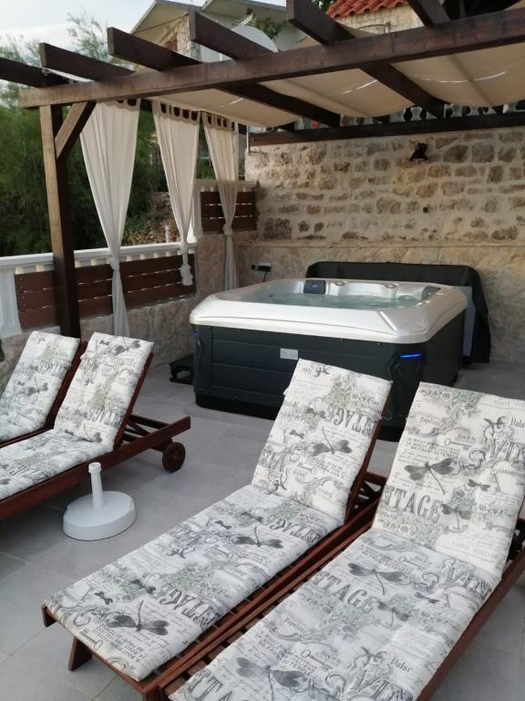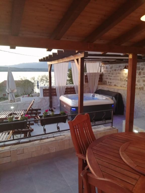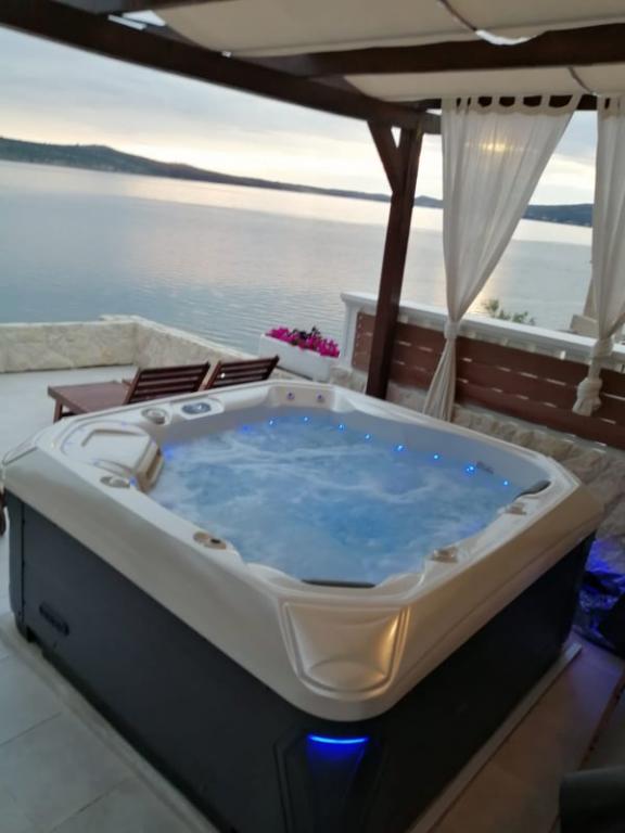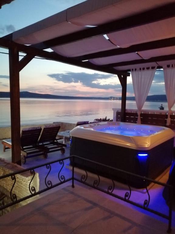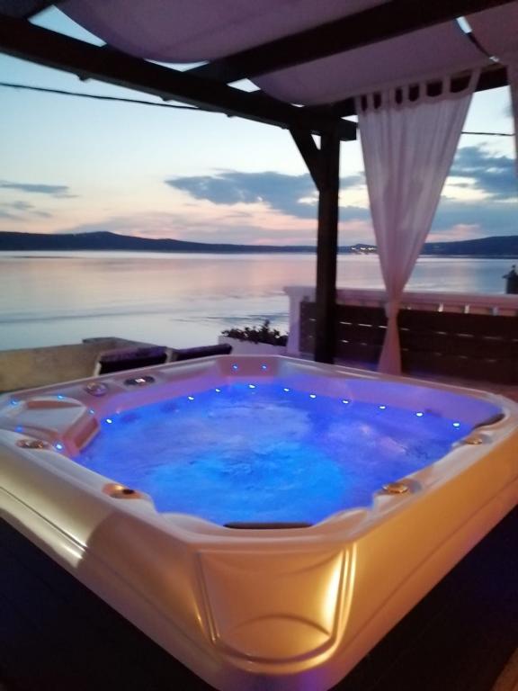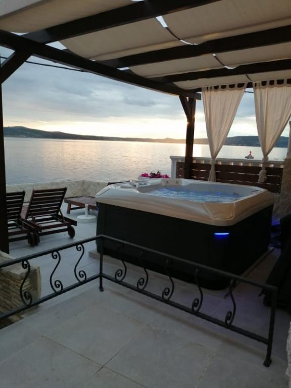 Oferujemy dwa w pełni wyposażone apartamenty z pięknym ogrodem. Na tarasach znajduje się grill i wysokiej jakości meble ogrodowe. Większy apartament na pierwszym piętrze posiada jacuzzi na dużym tarasie, wyłącznie do użytku gości dużego apartamentu. Obiekt położony jest w bezpośrednim sąsiedztwie plaży, a z tarasu roztacza się wspaniały widok na morze i morze Velebit. Spokojnym spacerem wzdłuż morza można dojść do oddalonego o 500 m centrum Novigradu. W Novigradzie dostępny jest bezpłatny parking. Miasto Zadar oddalone jest o 30 km, a w okolicy, w odległości od 20 do 120 km, znajdują się 4 parki narodowe / Paklenica, Wodospady Krka, Park Narodowy Kornati i Jeziora Plitwickie. Lotnisko znajduje się 15 km od apartamentu.