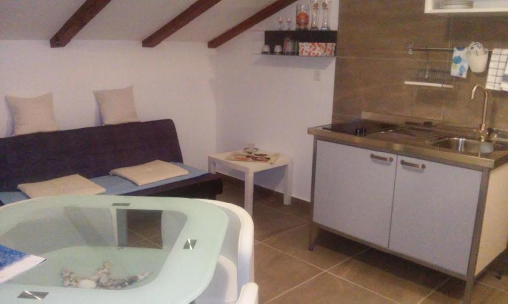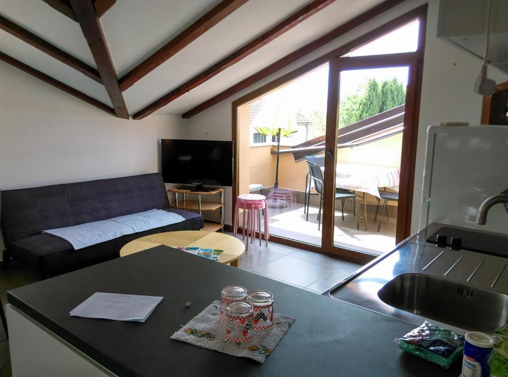 Apartament z dwiema sypialniami, pierwsza z podwójnym łóżkiem 160x200 i tarasem, druga z dwoma łóżkami 90x200 i jednym dodatkowym łóżkiem w salonie. Pokój dzienny i kuchnia z dodatkowym tarasem z widokiem na ogród. Łazienka, Wi-Fi, bezpłatny parking. Znajduje się na pierwszym piętrze w budynku z innymi mieszkaniami. 200 m od plaży, 5 minut na piechotę. Znajduje się w spokojnym miejscu, w wiosce turystycznej DAJLA, na przedmieściach Novigradu na Istrii, 3,5-4 km od centrum. Sklep 100m, piekarnia i restauracja 80m. Jest idealny na spokojne wakacje dla rodziny z dziećmi lub dorosłymi. Zwierzęta, palenie, imprezy prywatne i hałasowanie nie są dozwolone. Na życzenie istnieje możliwość dostawienia kolejnego łóżka, jedynie na więcej niż 4 noce, za dodatkową opłatą.