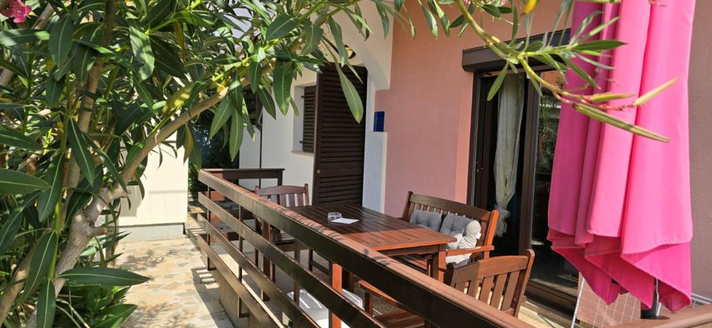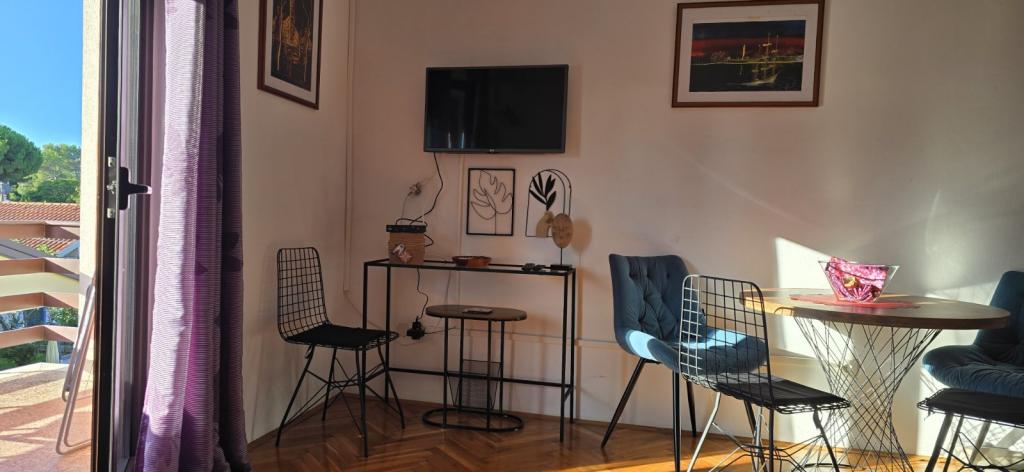 Położony w bezpośrednim sąsiedztwie plaży, dom Marina opiera się o las sosnowy i malowniczą długą promenadę z widokiem na bezkresny błękit morza. Prowadzi w jedną stronę do spokojnych plaż i ukrytych zatoczek, a w drugiej przez Marinę do ścisłego centrum miasta. Wzdłuż promenady znajdują się restauracje, kawiarnie, park dla dzieci, boiska sportowe, korty tenisowe, pole do minigolfa, siłownia plenerowa i ekologiczny plac z zieloną flagą. Zapach sosen, morza i soli nadaje całej atmosferze przyjemną i wyjątkową atmosferę. Dom Marina to idealne miejsce na spokojny wypoczynek, ale także na aktywny wypoczynek na łonie natury. Wnętrze domu zaaranżowano tak, aby połączyć styl klasyczny i nowoczesny. Chodzi o to, aby zmaksymalizować komfort sypialni i innych przestrzeni. Apartamenty są wygodne i wyposażone w nowoczesny sprzęt. Każdy apartament posiada przestronny taras, na którym goście mogą odpocząć. Na podwórzu domu znajduje się miejsce na grilla i parking. Do plaży można dojść w minutę, a do centrum miasta w 10 minut, wzdłuż nadmorskiej promenady.