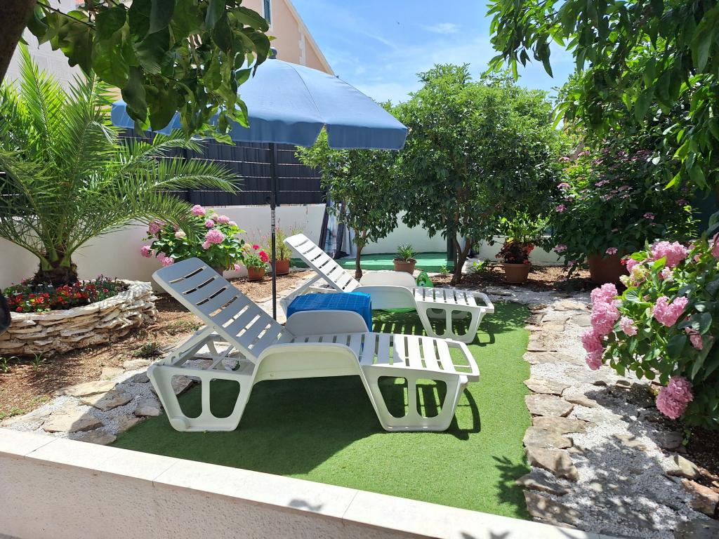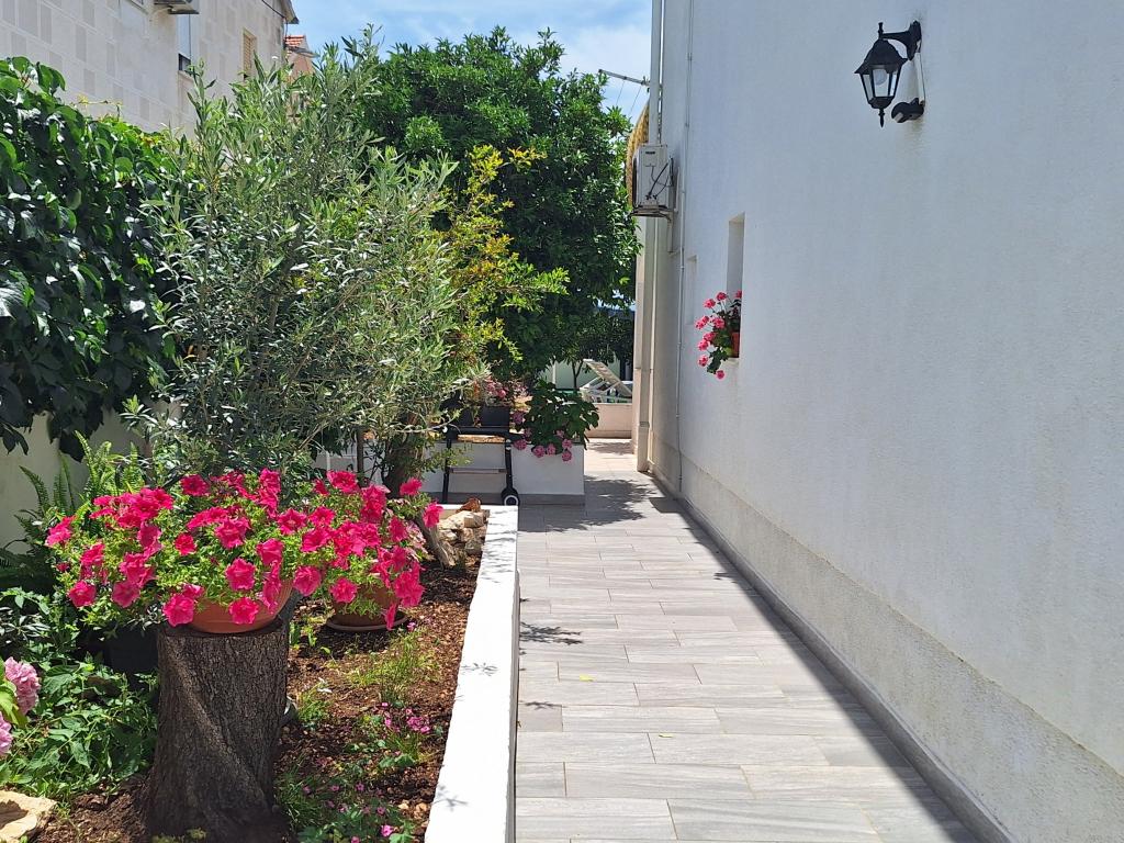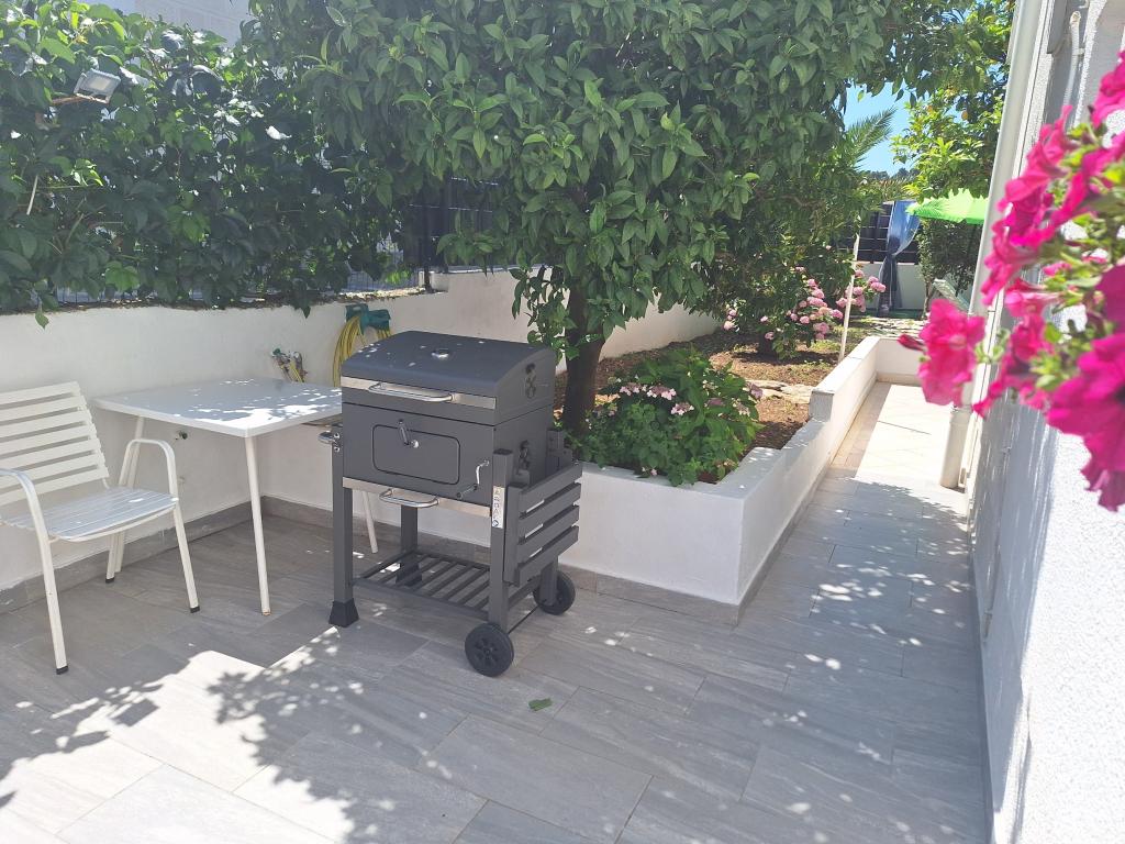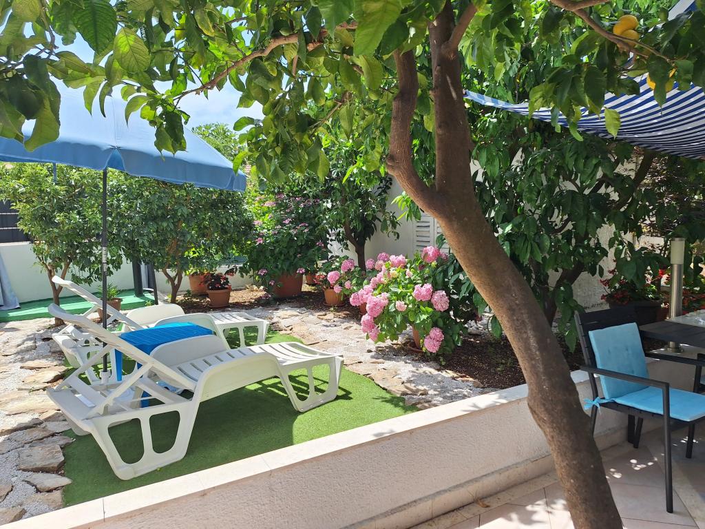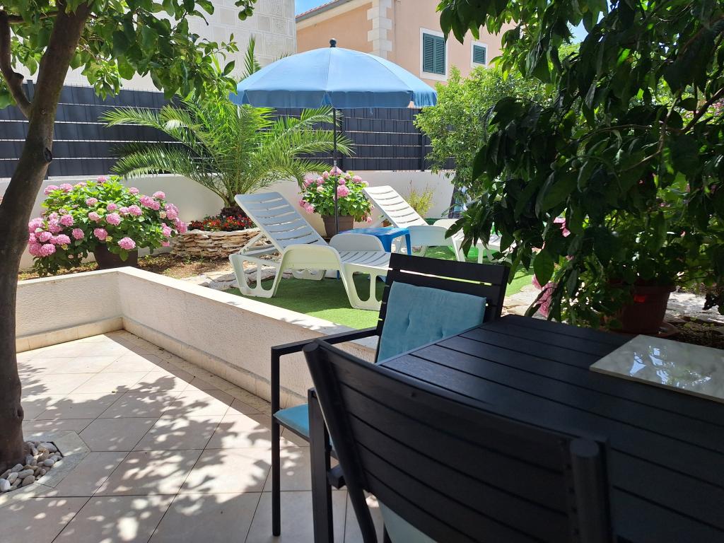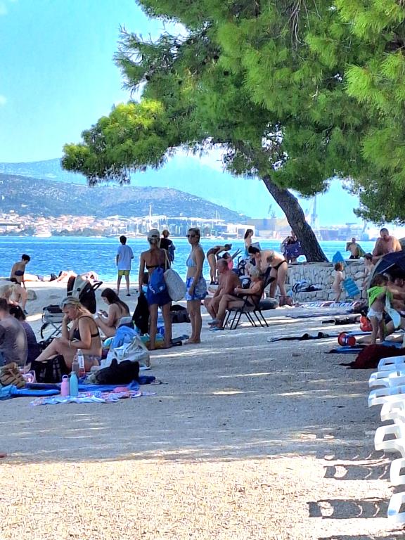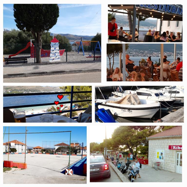 Doskonale wyposażony (wszystko wliczone w cenę, a także opłata klimatyczna), przestronny, Apartament Gizella, na parterze domu rodzinnego, z tarasem, podwórkiem i parkingiem, jego lokalizacja zapewnia spokojne, relaksujące rodzinne wakacje w odcień pomarańczy, cytryny, mandarynki i piękne lasy sosnowe, które górują nad krystalicznie czystym morzem, z możliwością spacerów i jazdy na rowerze obok gajów oliwnych i śródziemnomorskich roślin leczniczych. Jesteście jedynymi gośćmi w obiekcie i macie osobne wejście. Żwirowe, kamieniste i betonowe plaże z parkingiem, sklepami, kawiarniami, restauracjami, fast foodami, placami zabaw dla dzieci i sportowymi, autobusem i bankomatem znajdują się w odległości pięciu do sześciu minut spacerem. Jednocześnie, zaledwie 8 km dalej, starożytne miasto Trogir, objęte ochroną UNESCO, połączone mostami, w pobliżu Parku Narodowego Krka, wysp Šolta i Brač, oferuje dynamiczne wycieczki i rozrywkę. Bliskość lotniska ułatwia przyjazd i istnieje możliwość zorganizowania transferu. Miejsce jest małe, ciche i piękne. Czekamy na Państwa z powitalnym drinkiem