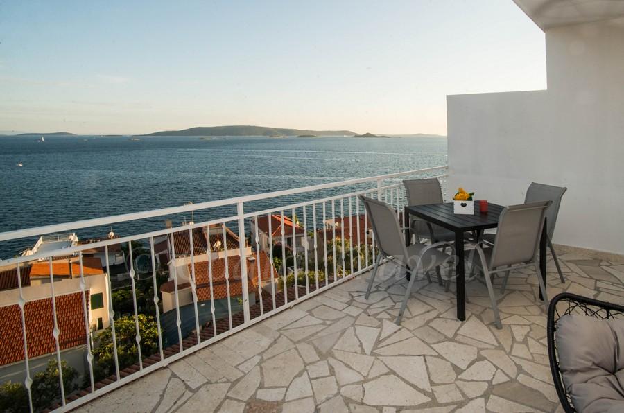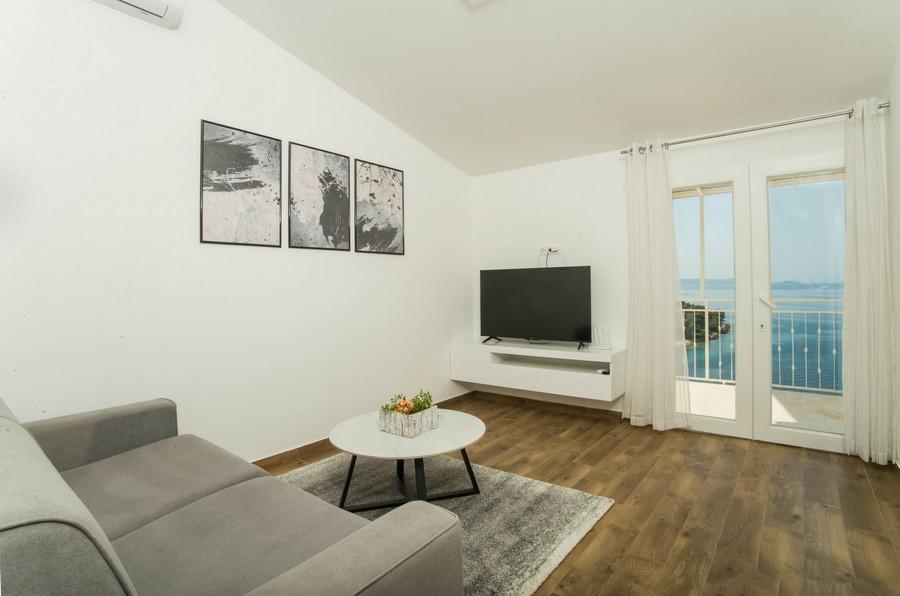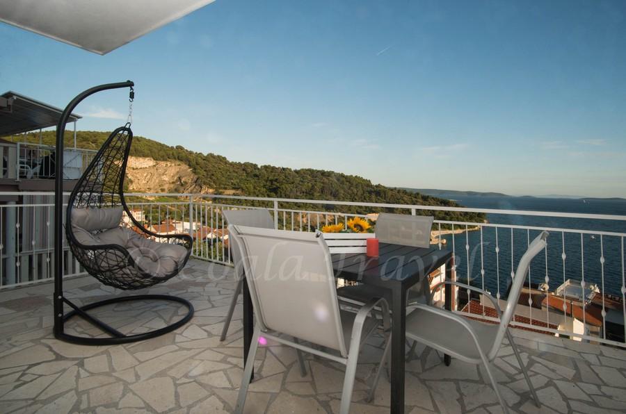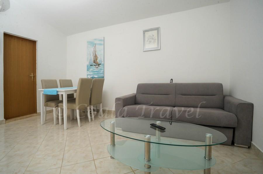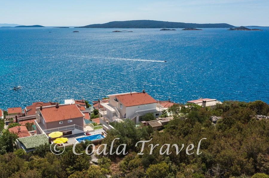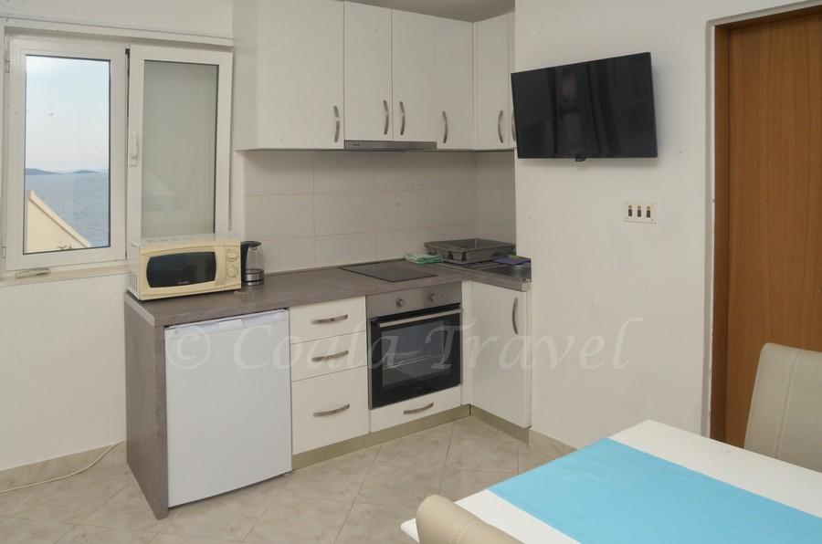 Dom apartamentowy Kristi znajduje się w spokojnej okolicy w Okrug Donji, z pięknym widokiem na morze i wyspy. 5 apartamentów i jeden wolnostojący jako oddzielny dom. Każdy apartament ma miejsce parkingowe w garażu dla każdego samochodu. Pobyt psa jest następnie obciążany opłatą w wysokości 10 € za noc. Nie ma zwrotu depozytu w przypadku rezerwacji anulowanych 40 dni lub krócej od daty przyjazdu. Pobyt psa 10 € z wcześniejszym powiadomieniem