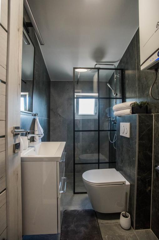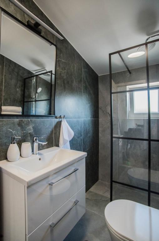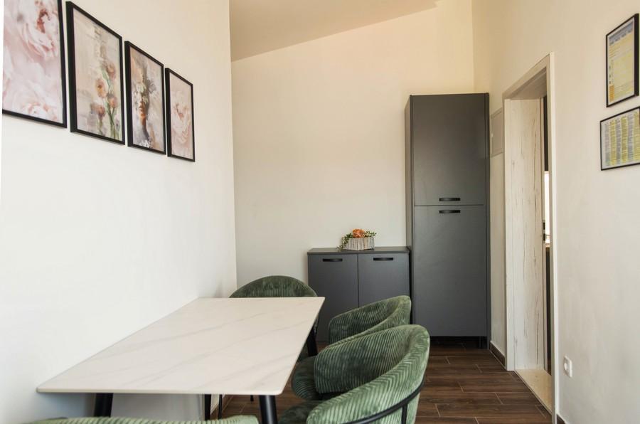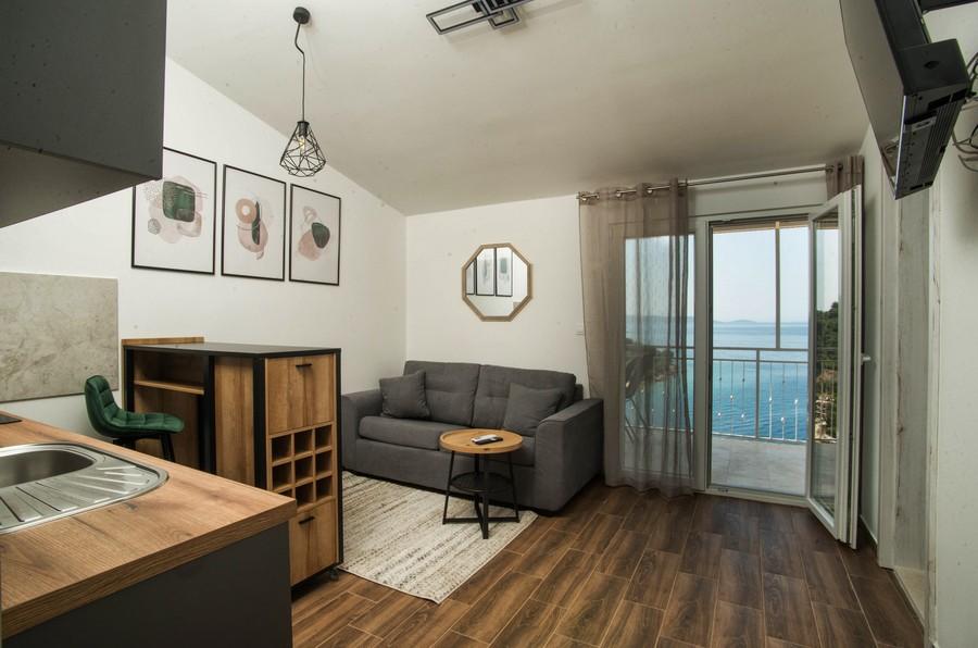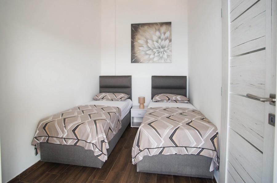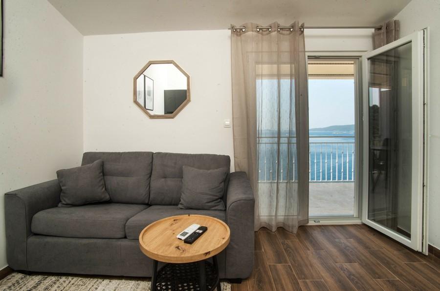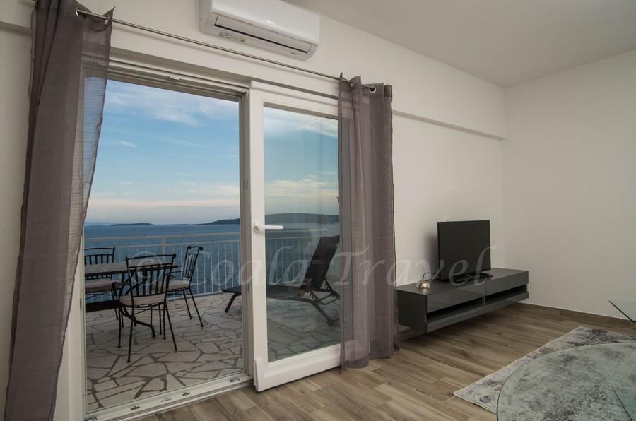 Dom apartamentowy Kristi znajduje się w spokojnej okolicy w Okrug Donji, z pięknym widokiem na morze i wyspy. 5 apartamentów i jeden wolnostojący jako oddzielny dom. Każdy apartament ma miejsce parkingowe w garażu dla każdego samochodu. Pobyt psa jest następnie obciążany opłatą w wysokości 10 € za noc. Nie ma zwrotu depozytu w przypadku rezerwacji anulowanych 40 dni lub krócej od daty przyjazdu. Pobyt psa 10 € z wcześniejszym powiadomieniem