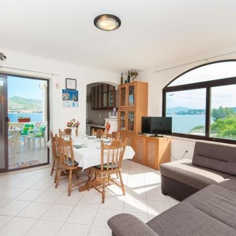 Byłem już w kilku miejscach w Chorwacji, ale ten apartament był najlepszy ze wszystkich w jakich do tej pory byłem. Mamy pełne wyposażenie kuchni, łazienki, a jeżeli czegoś brakuje mili gospodarze zawsze pomogą . Cały apartament bardzo czysty i zadbany. Widok z dużego balkonu rano i wieczorem świetny. Najważniejsze, że nie trzeba ruszać się na żadną plaże, skoro jest dostępna prywatna. Bardzo polecam tych Państwa, z przyjemnością wybrałbym się ponownie w te same miejsce. W przypadku chęci podjechania do Trogiru bez auta, to kursuje z głównej plaży mały prom 20 HRK od osoby w jedną stronę.