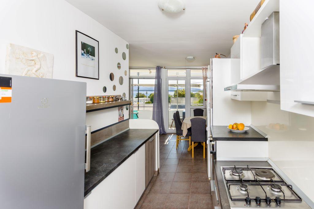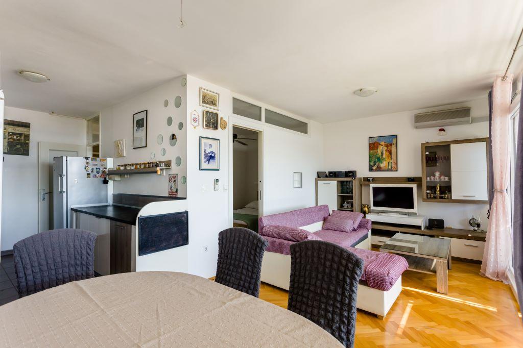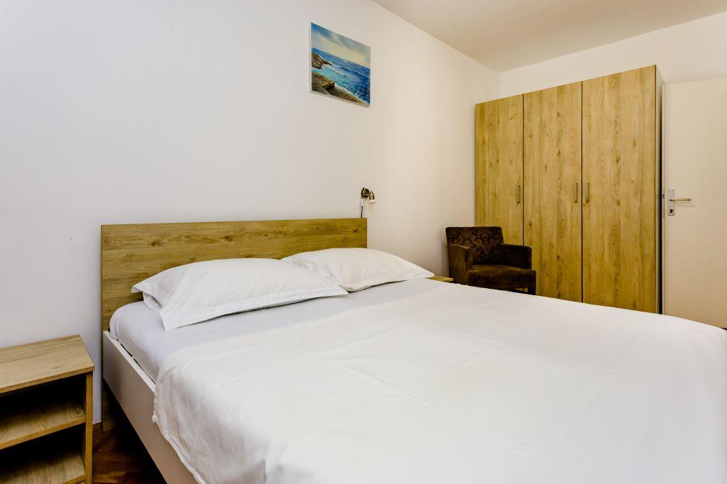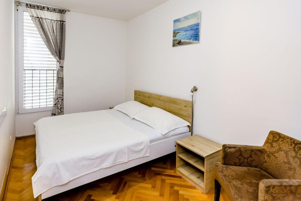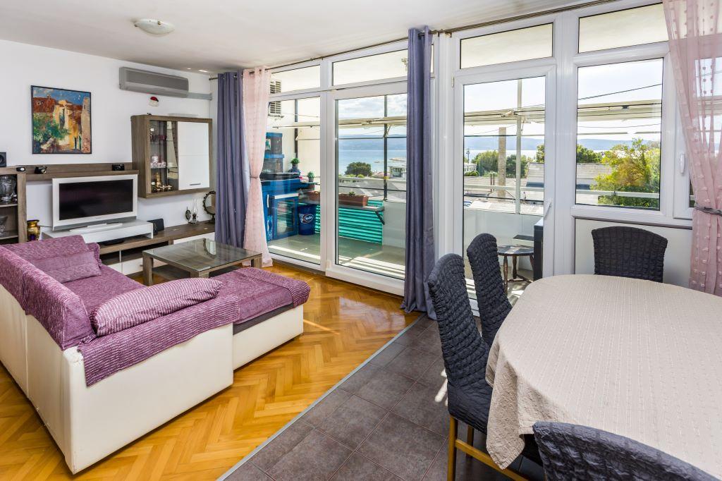 Apartament położony jest w samym centrum Omiša, w pierwszym rzędzie od morza, przy dużej piaszczystej plaży. Centrum miasta jest oddalone o zaledwie kilka metrów, podobnie jak restauracje, targi, apteki i inne udogodnienia. Obiekt położony jest w pobliżu rzeki Cetiny, co umożliwia skorzystanie z wszelkich dostępnych atrakcji (rafting, kajakarstwo, zjazd na linie, przejażdżki quadami, rejsy łodzią...). Parking znajduje się w pobliżu budynku na terenie publicznym i kosztuje 20 €/tydzień. Apartament jest przestronny, posiada 3 sypialnie, duży salon z dużą rozkładaną sofą, 1,5 łazienki i taras. Może pomieścić 7 osób.