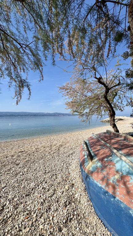 Obudź się z widokiem na morze – idealne wakacje w pobliżu Omis. Ucieknij od tłumów i ciesz się spokojem. Tylko 100 m od plaży i morza. Nowoczesny apartament dwupoziomowy 2+2 idealny dla rodziny. Na piętrze piękny widok na morze, na parterze duży taras z leżakami, stołem i grillem – Twoja mała oaza. Wszystko w zasięgu ręki: restauracja – 20 m, supermarket – 50 m, Omiš – 2 km spacerem wzdłuż morza. Spokojna i cicha lokalizacja, strzeżony prywatny parking. Oferujemy również wycieczki pełne przygód, a także prywatne rejsy statkiem.