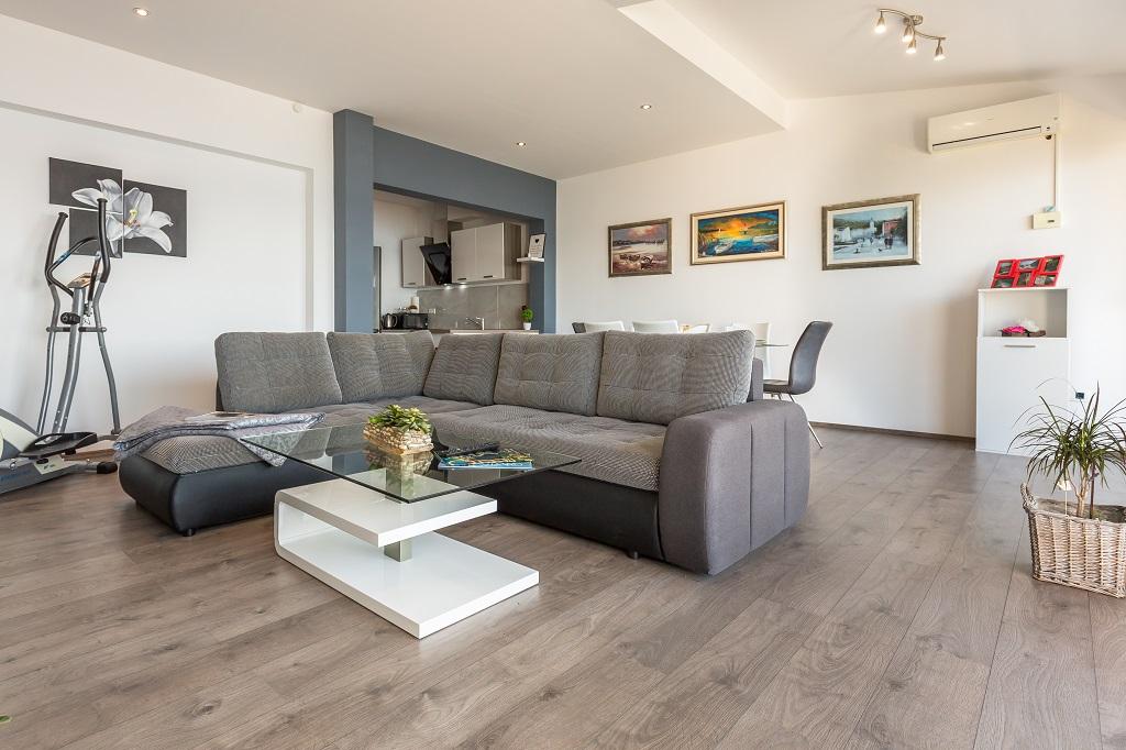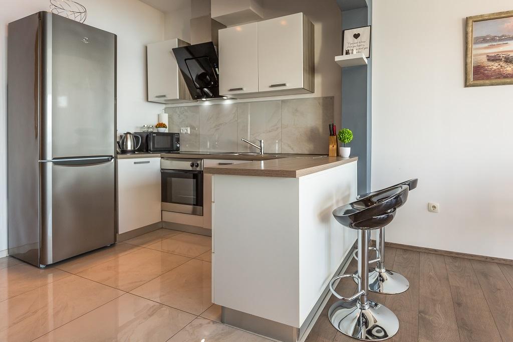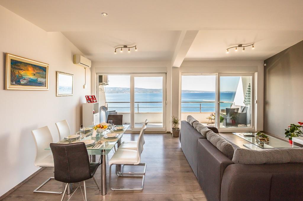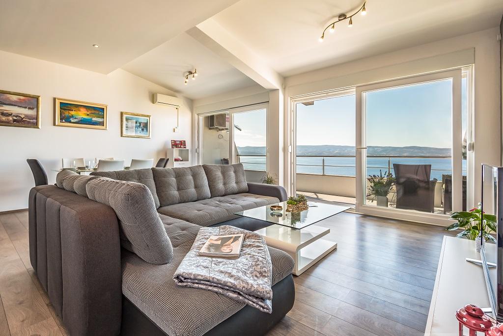 NOWE I NOWOCZESNE MIESZKANIE. Apartament znajduje się w prywatnym rodzinnym domu z widokiem na morze, wyspy i lokalne plaże. W pobliżu centrum Omiša, tylko 500m od hotelu. Wszystko jest nowe. Mieszkanie ma 95 m2. Posiada 3 sypialnie, salon, kuchnię z jadalnią, toaletę i dodatkową łazienkę, balkon oraz miejsce postojowe w garażu. Sypialnie: Jeden pokój posiada duże łóżko (180 x 190) dla 2 osób. W drugim pokoju znajduje się francuskie łóżko (160 x 190) dla 2 osób. Trzeci pokój posiada pojedyncze łóżko (90 x 190) dla 1 osoby. Łazienka z umywalką i prysznicem. WC z umywalką i pralką. Kuchnia jest w pełni wyposażona. Salon jest przestronny. Duży balkon z miejscem do siedzenia.