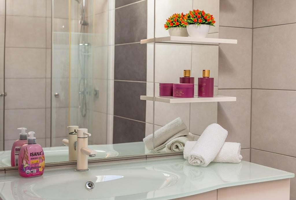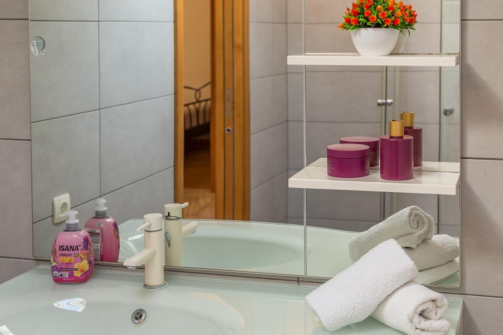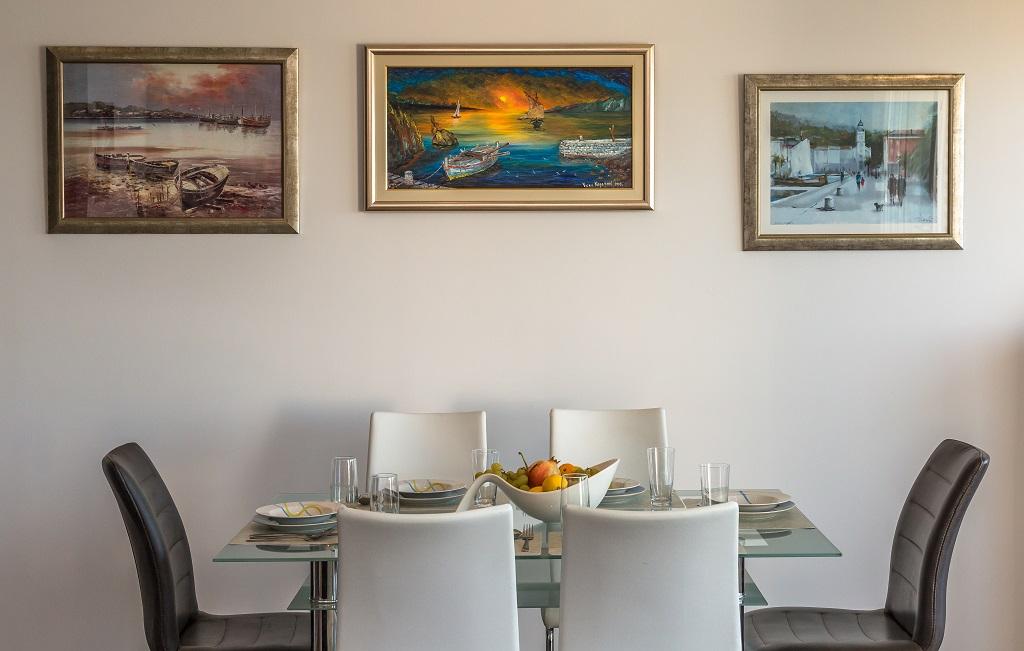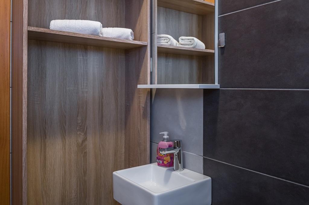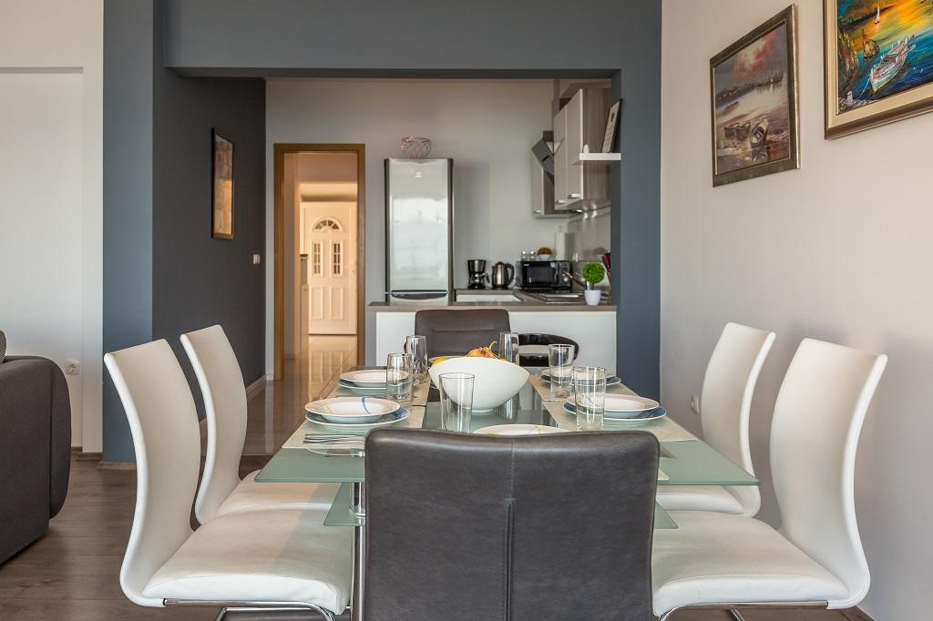 NOWE I NOWOCZESNE MIESZKANIE. Apartament znajduje się w prywatnym rodzinnym domu z widokiem na morze, wyspy i lokalne plaże. W pobliżu centrum Omiša, tylko 500m od hotelu. Wszystko jest nowe. Mieszkanie ma 95 m2. Posiada 3 sypialnie, salon, kuchnię z jadalnią, toaletę i dodatkową łazienkę, balkon oraz miejsce postojowe w garażu. Sypialnie: Jeden pokój posiada duże łóżko (180 x 190) dla 2 osób. W drugim pokoju znajduje się francuskie łóżko (160 x 190) dla 2 osób. Trzeci pokój posiada pojedyncze łóżko (90 x 190) dla 1 osoby. Łazienka z umywalką i prysznicem. WC z umywalką i pralką. Kuchnia jest w pełni wyposażona. Salon jest przestronny. Duży balkon z miejscem do siedzenia.