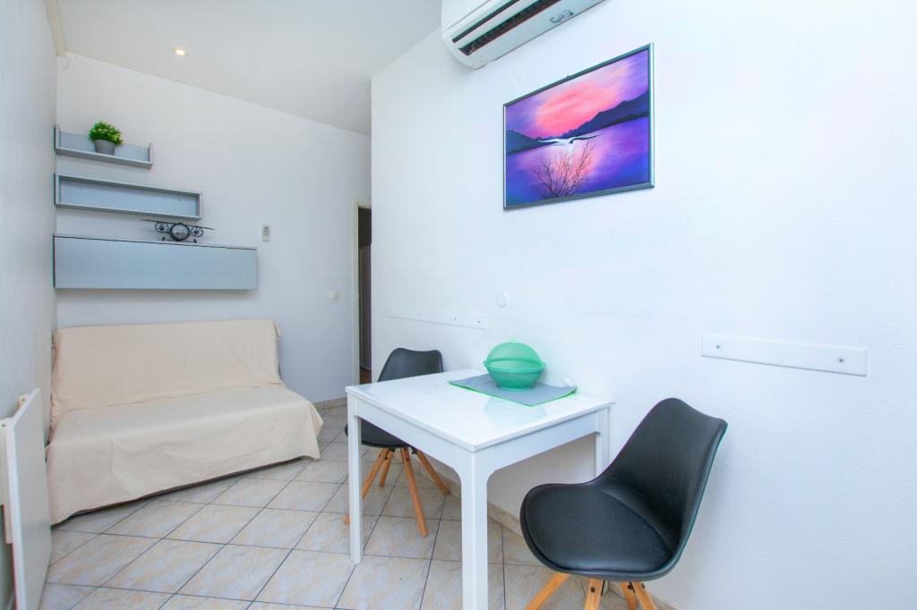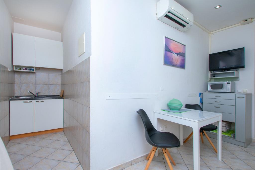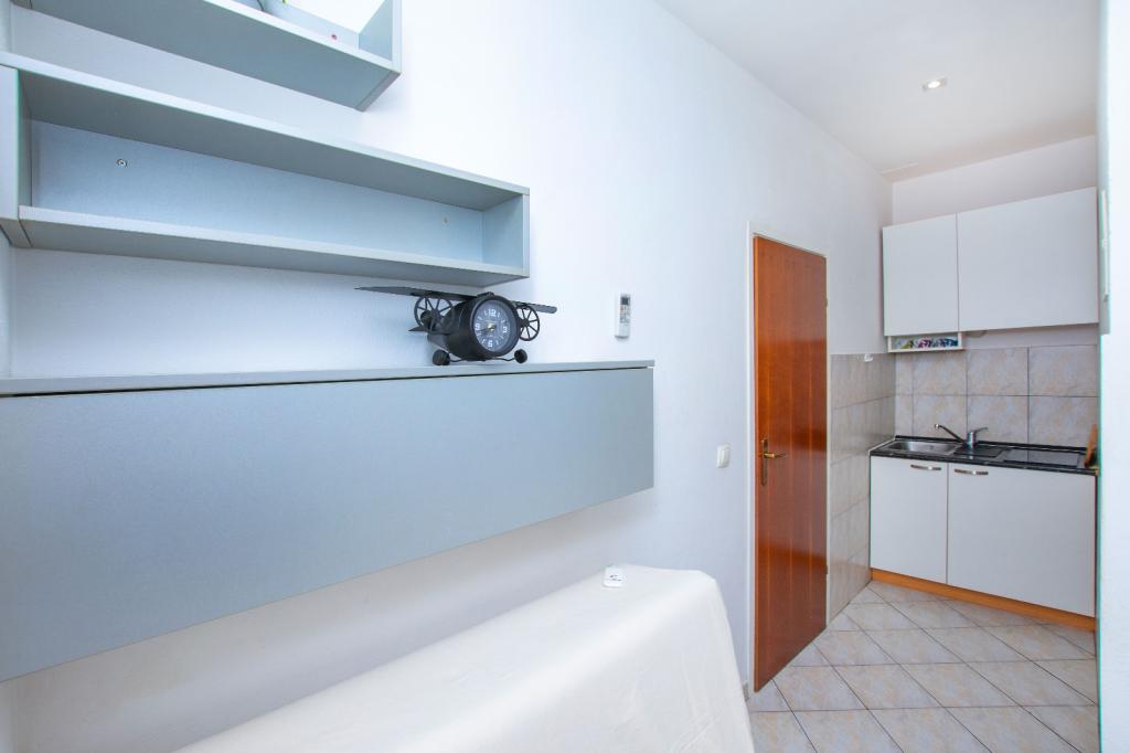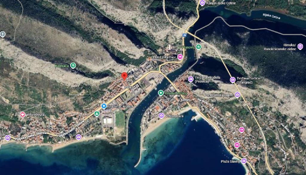 Apartament „Piccolo” znajduje się w Omišu, 5 minut od Starego Miasta i około 5-7 minut spacerem od piaszczystej plaży (Velika plaža). Składa się z salonu z jadalnią i kuchnią, oddzielnej sypialni oraz łazienki z prysznicem i pralką – powierzchnia całkowita 25 m². Apartament oferuje klimatyzację, taras i bezpłatny dostęp do internetu. W dobrze wyposażonej kuchni Goście znajdą kuchenkę mikrofalową, lodówkę, kuchenkę, ekspres do kawy, czajnik i naczynia. Apartament znajduje się w budynku mieszkalnym i posiada osobne wejście po schodach od strony południowej. Do dyspozycji Gości jest bezpłatny parking. Rodzaje łóżek: 1 łóżko podwójne (160x210 cm) + rozkładana sofa. W pobliżu apartamentu znajduje się tyrolka, rafting na rzece Cetina, popularne wycieczki łodzią na pobliskie wyspy, kajakarstwo, wspinaczka, piesze wędrówki oraz piękne nadmorskie promenady. Apartament położony jest w cichej okolicy i oferuje bezpieczne miejsce do pracy oraz szybki internet. Liczba osób: 2