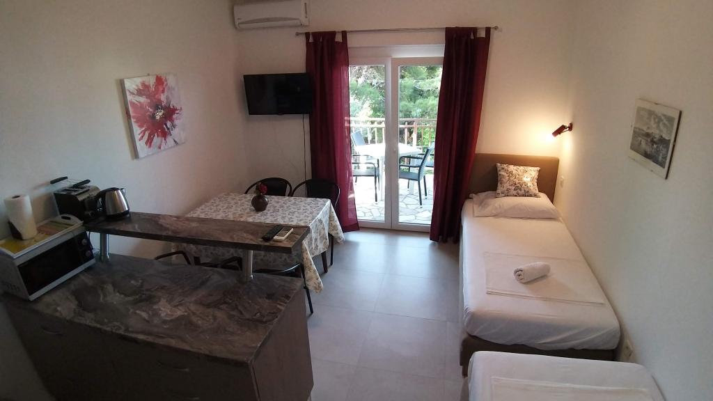 Czytaj więcej KwaterZameldowanie 14:00, Wymeldowanie: 10:00; MIN 5 nocy. Wcześniejsze zameldowanie od 09:00/ późne wymeldowanie do 17:00 (w miarę możliwości) 30 EUR Zaliczka rezerwacyjna 25% nie podlega zwrotowi. Płatność: gotówka, HRK, EUR przy zameldowaniu we wszystkie uzgodnione dni. Cena obejmuje: Jedno miejsce parkingowe na apartament (więcej po wysłaniu zapytania), Klimatyzację (w ramach dozwolonego użytku), opłaty, podatki i podatek pobytowy, Wi-Fi. Grill znajduje się na parkingu do użytku dla 3 apartamentów 1 komplet pościeli i 4 ręczniki na 7 nocy W cenie dania: 3 garnki, patelnia, 6 szklanek, 6 filiżanek, otwieracze, deski do krojenia, sztućce, zmywarka, kuchenka mikrofalowa , toster, czajnik