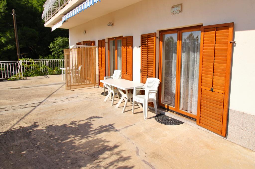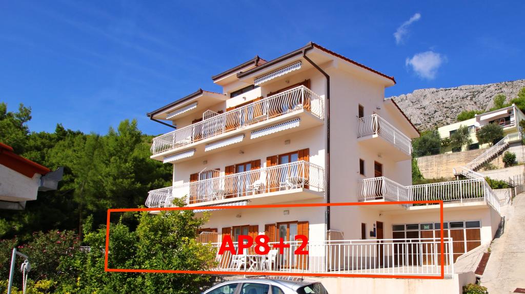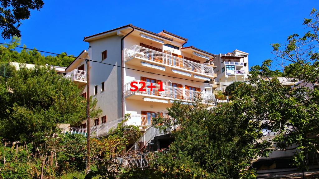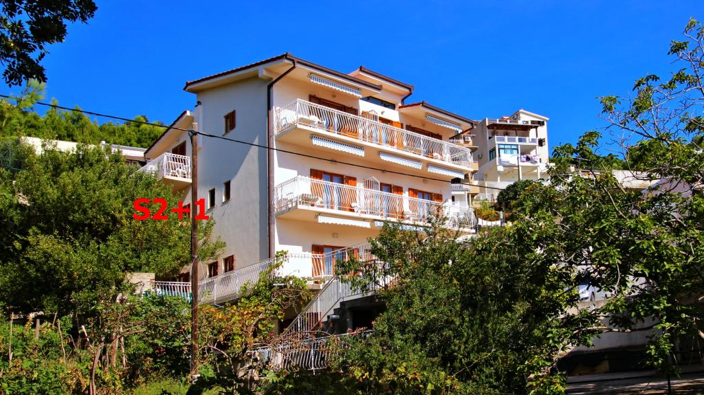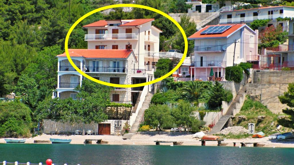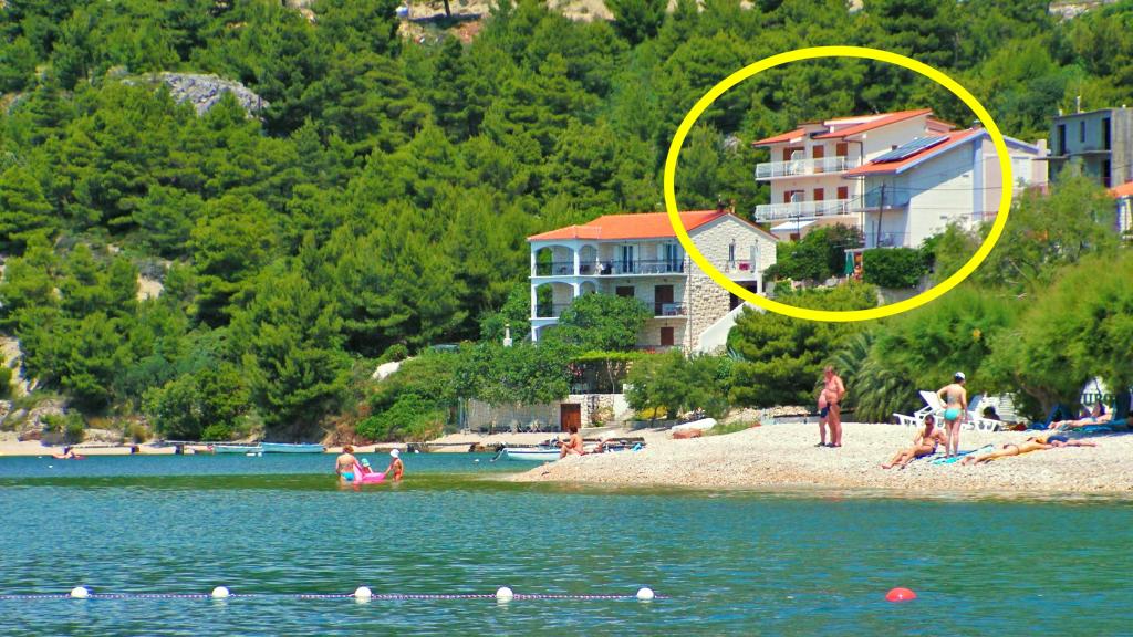 Drugi rząd od morza i plaży! Skraj wsi, ciche miejsce! Oferujemy >>> duży apartament 8+2 na parterze domu dla 8-10 osób - 4 sypialnie, 3 łazienki z toaletą, 1 toaleta, 3 małe kuchnie, duży taras 40 m2!! >>> dwa apartamenty dla 4 osób, każdy z 1 sypialnią, 1 sypialnią z mini kuchnią, 1 łazienką z toaletą, 1 toaletą, balkonem z widokiem na morze!! >>> dwa studia dla 2+1 osób, każdy z 1 mini kuchnią, 1 łazienką z toaletą, balkonem z widokiem na morze