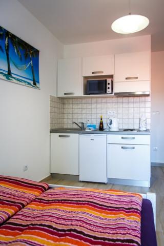 Opłata jest wliczone w cenę.Mieszkanie nie spełniło naszych oczekiwań łazienka jest bardzo mała i żeby się załatwić to trzeba się schylić .Łóżko w małym pokoju nie dało się spać ponieważ deska się wbijała w plecy myślę że lepszy byłby materac dwuosobowy zamiast tego łóżka.Jeszcze pralka pierwsze pranie gratis następne 5euro.Jedynu plus to taras z pięknym widokiem.